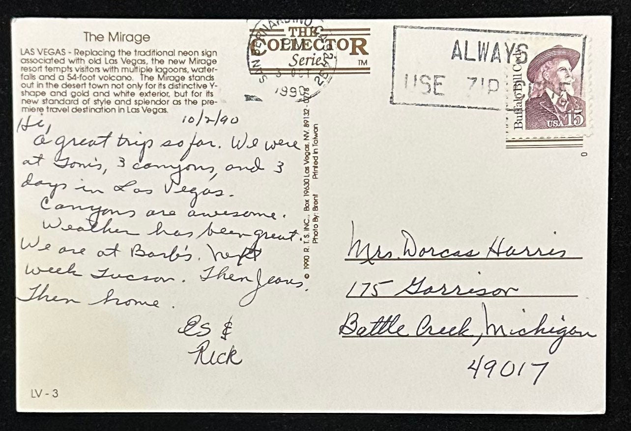 Mailed: Posted on October 3, 1990 from San Bernardino, California with a 15 cent Buffalo Bill stamp