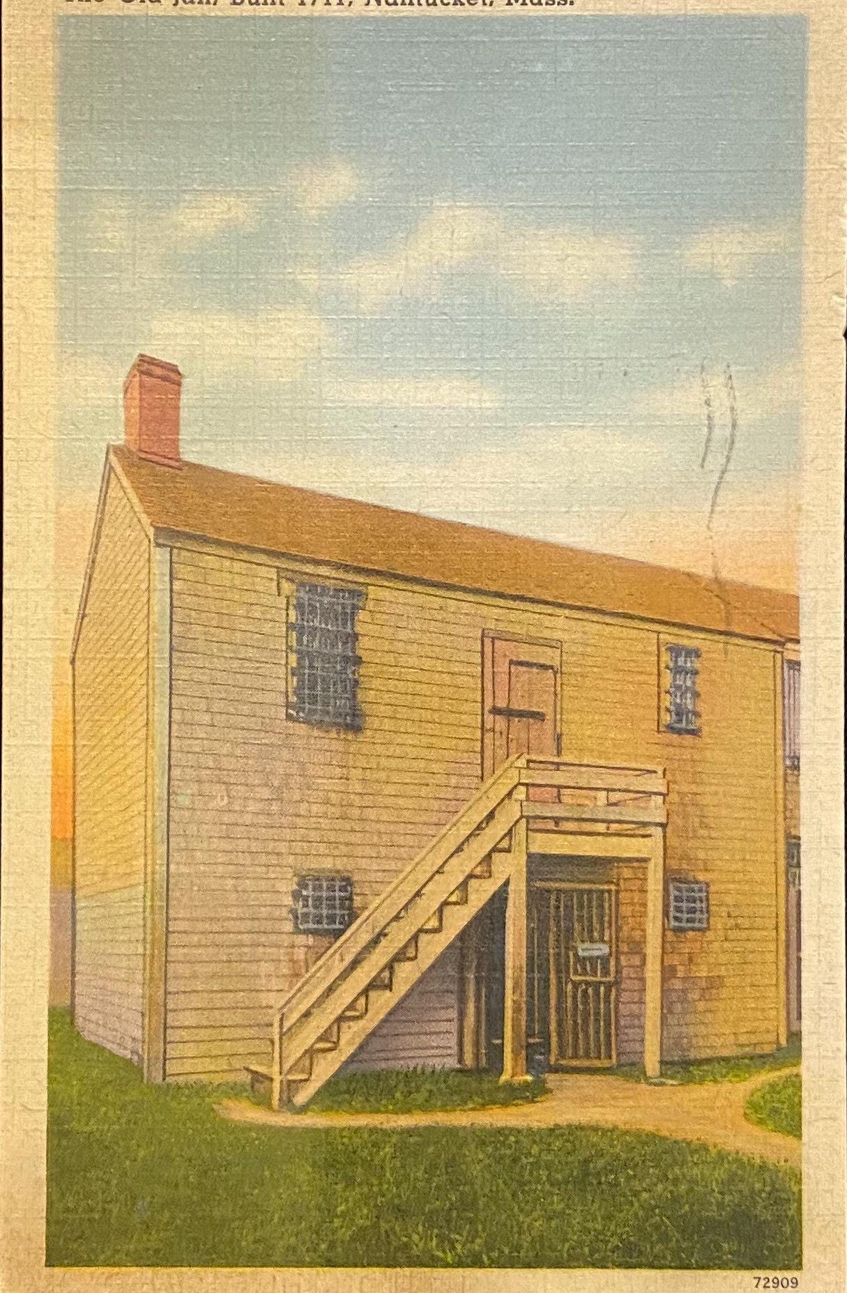 Front: The Old Jail, Built 1711, Nantucket, Mass. - 1940s Linen Postcard