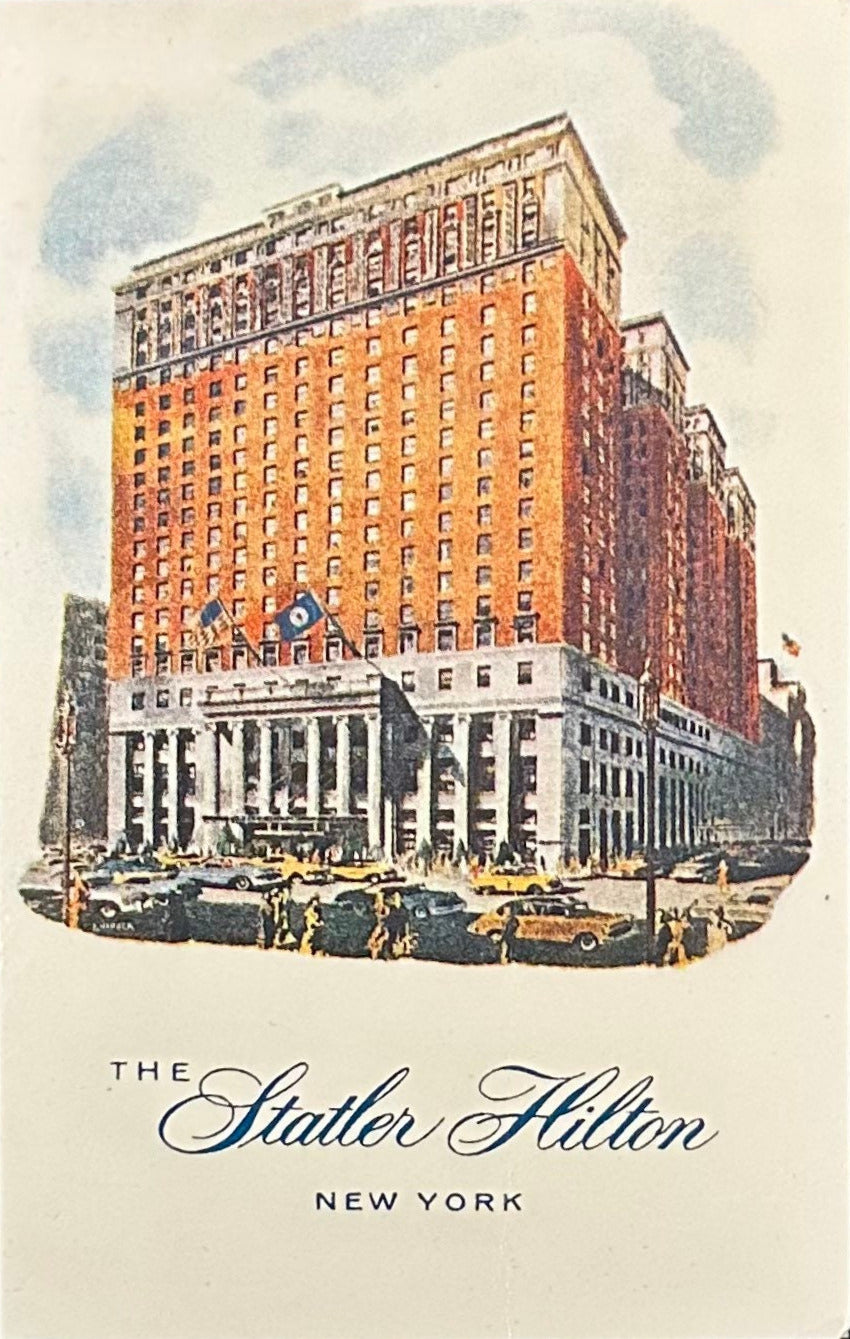 Back Information: At “The Gateway to the Heartbeat of New York City,” surrounded by the cultural, entertainment, business and shopping centers of the city, the Statler Hilton is readily accessible to the Pennsylvania R.R. and Grand Central stations, air line terminals, New Madison Square Garden Center, Empire State Building, Macy’s, Gimble’s, Korvettes’s, Broadway theater district, museums, Central Park, and Lincoln Center. All within walking distance, subway, bus, or taxi at hotel entrance. Call. PE 6-5000 Teletype: 212-640-4493