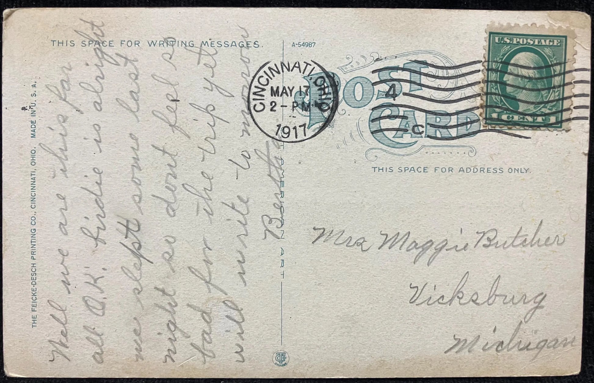 Mailed: Postmark 1917 with a green one cent George Washington stamp