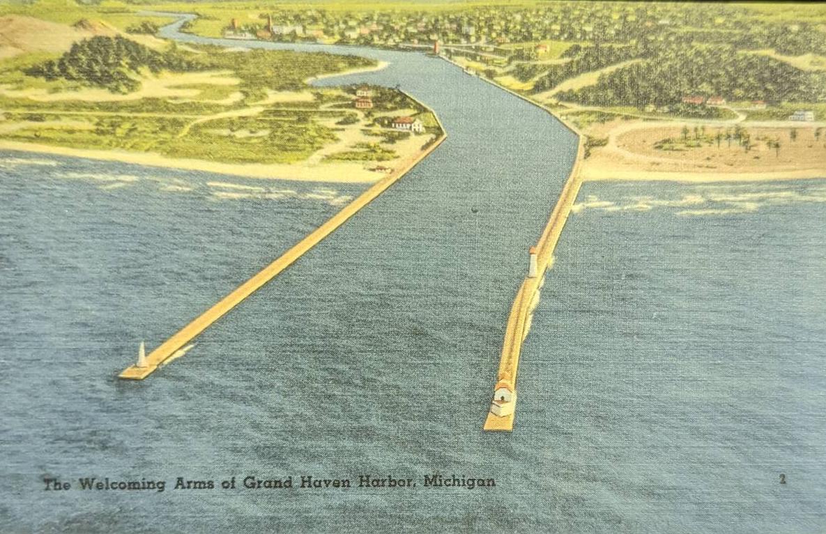 The Welcoming Arms - Grand Haven Harbor, Michigan - Vintage Postcard
