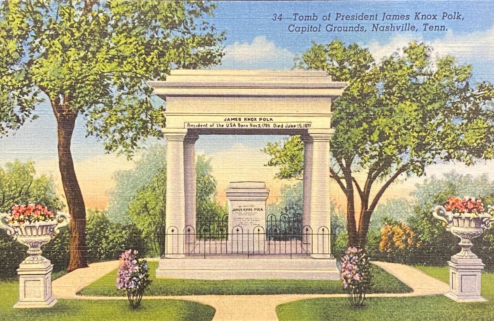 Tomb of President James Knox Polk - Capitol Grounds - Nashville, Tennessee - Vintage Postcard