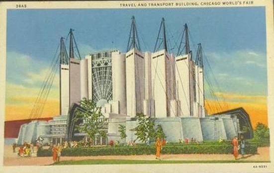 Travel and Transport Building at Chicago World's Fair - Linen Postcard 1940s