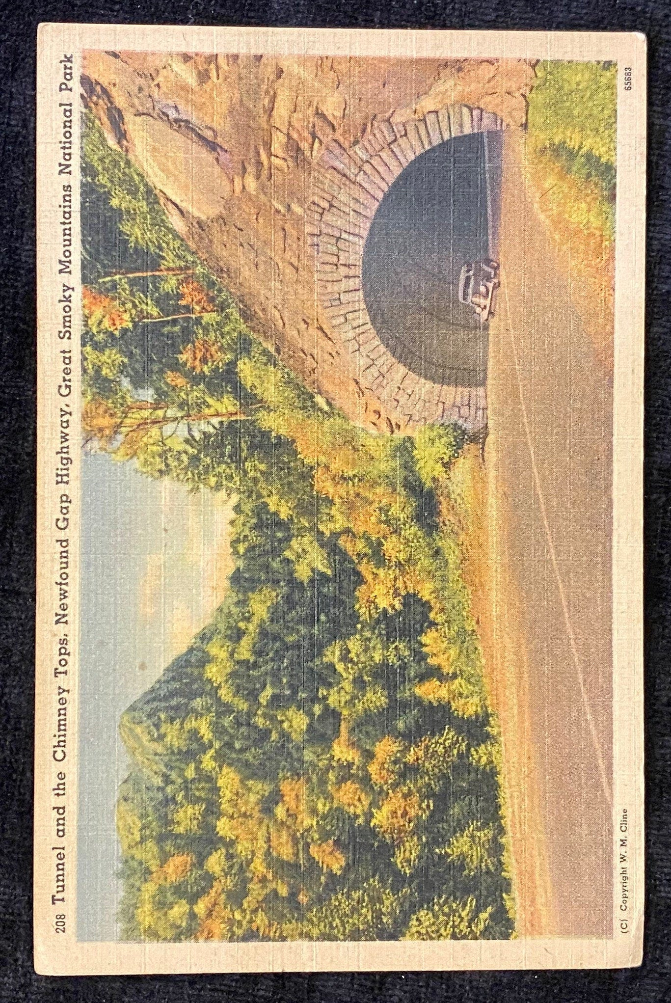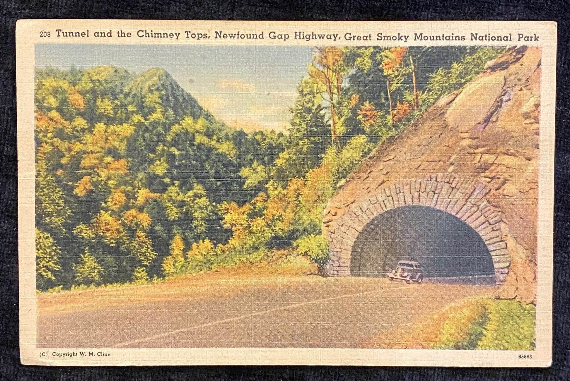 Tunnel and the Chimney Tops - Newfound Gap Highway - Great Smoky Mountains National Park, Tennessee - 1940s Linen Postcard
