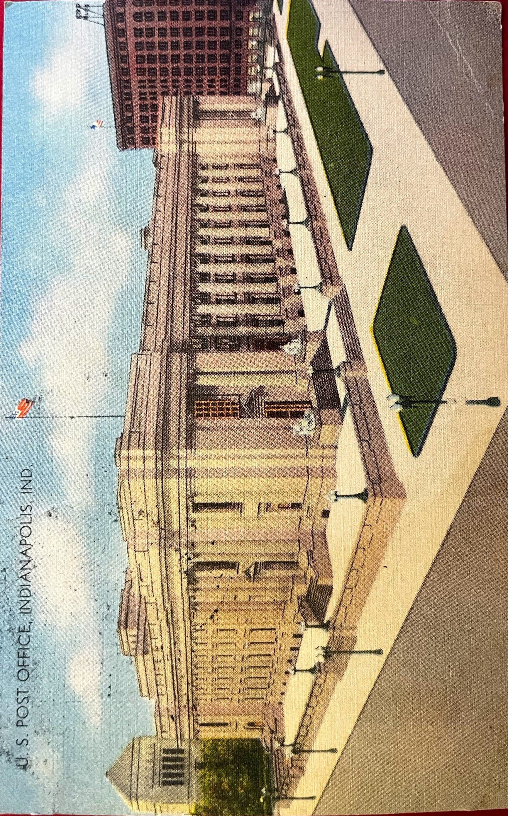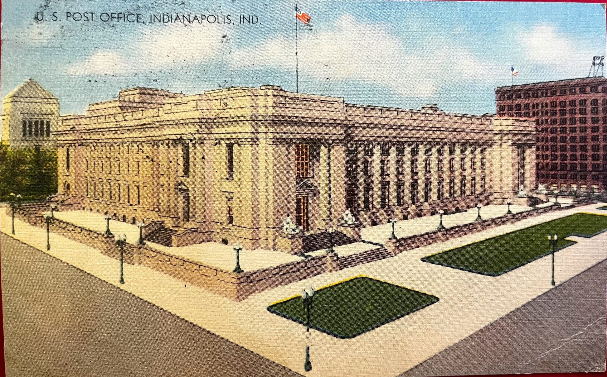 US Post Office, Indianapolis, Indiana - Vintage Linen Postcard 1940s
