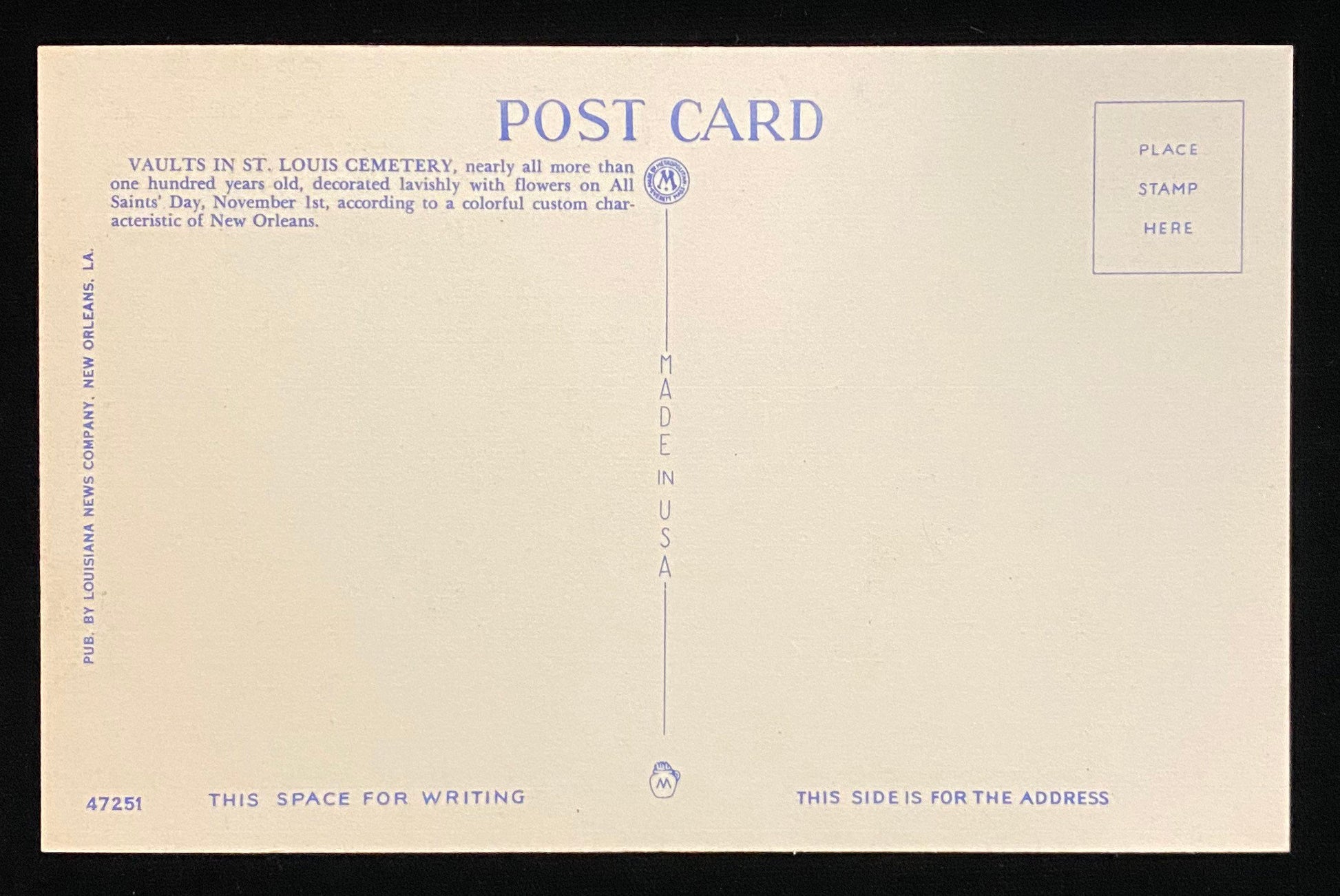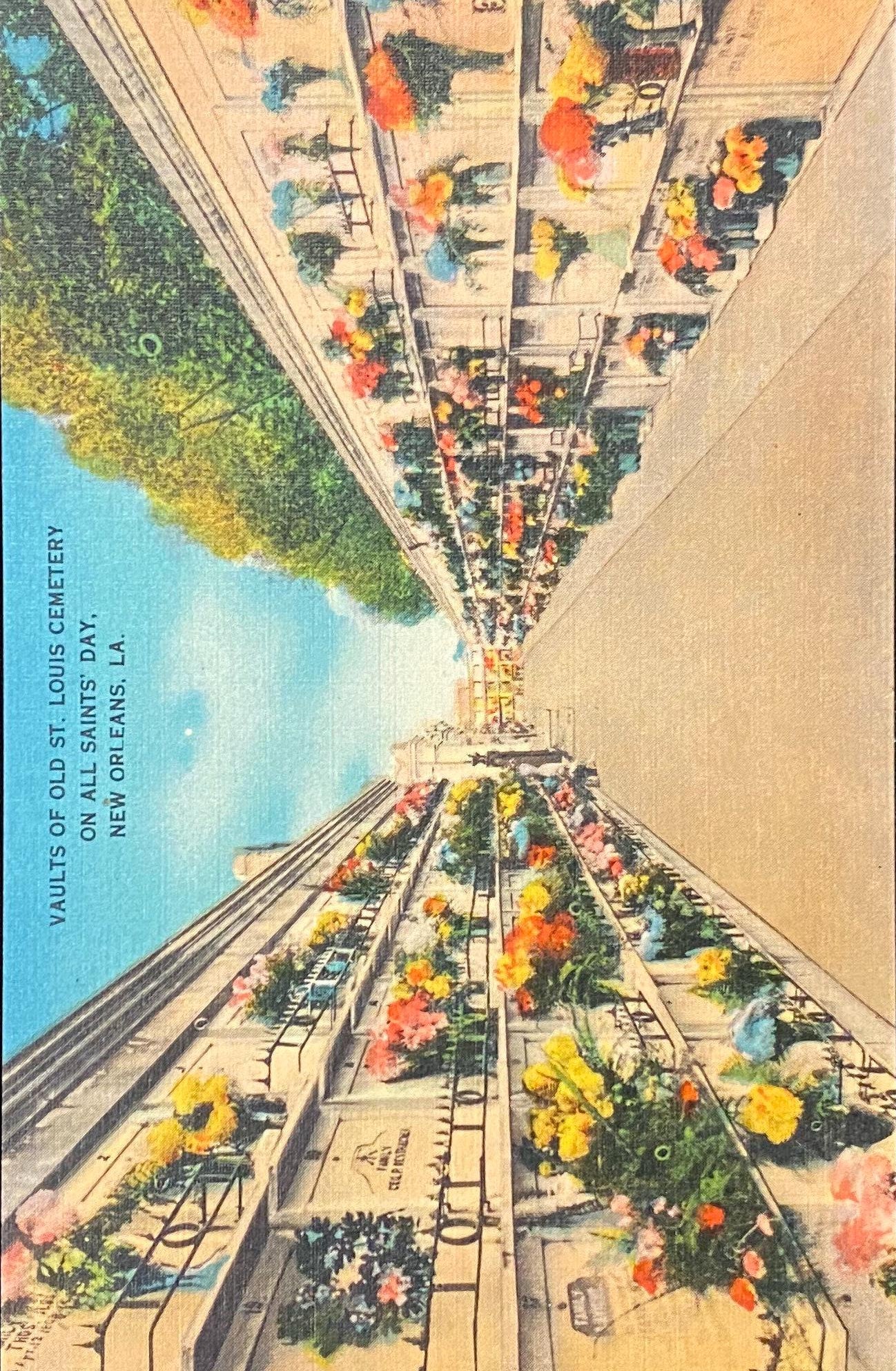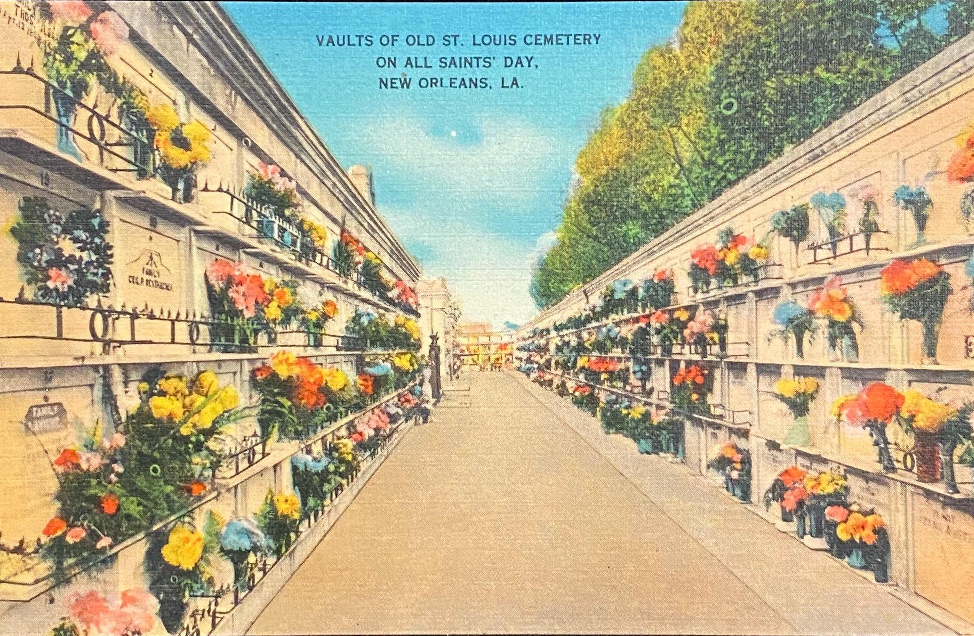 Vaults of Old St. Louis Cemetery on All Saints' Day, New Orleans, Louisiana - 1940s Linen Postcard