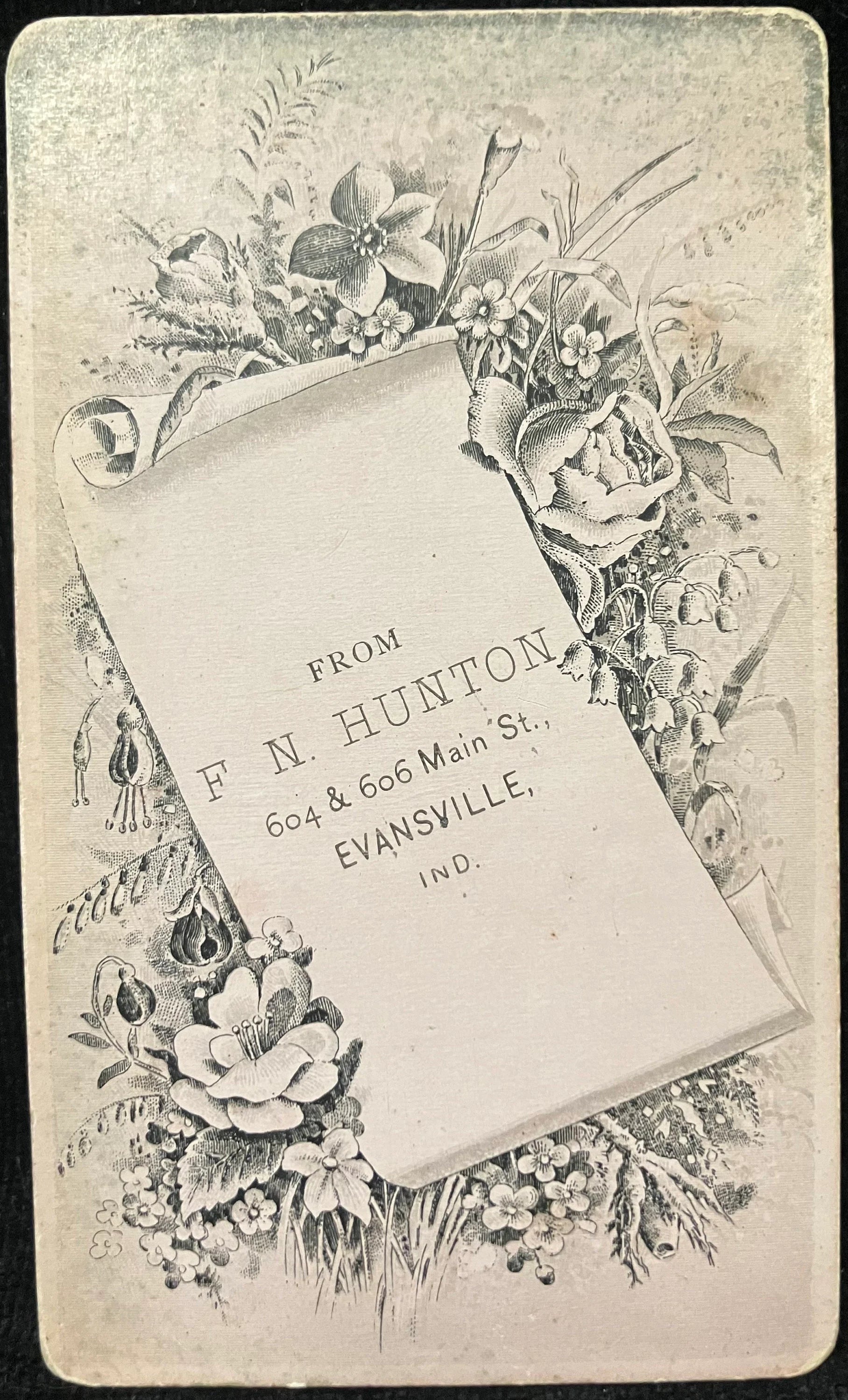 On back: From F. N. Hinton 604 & 606 Main St., Evansville Ind.