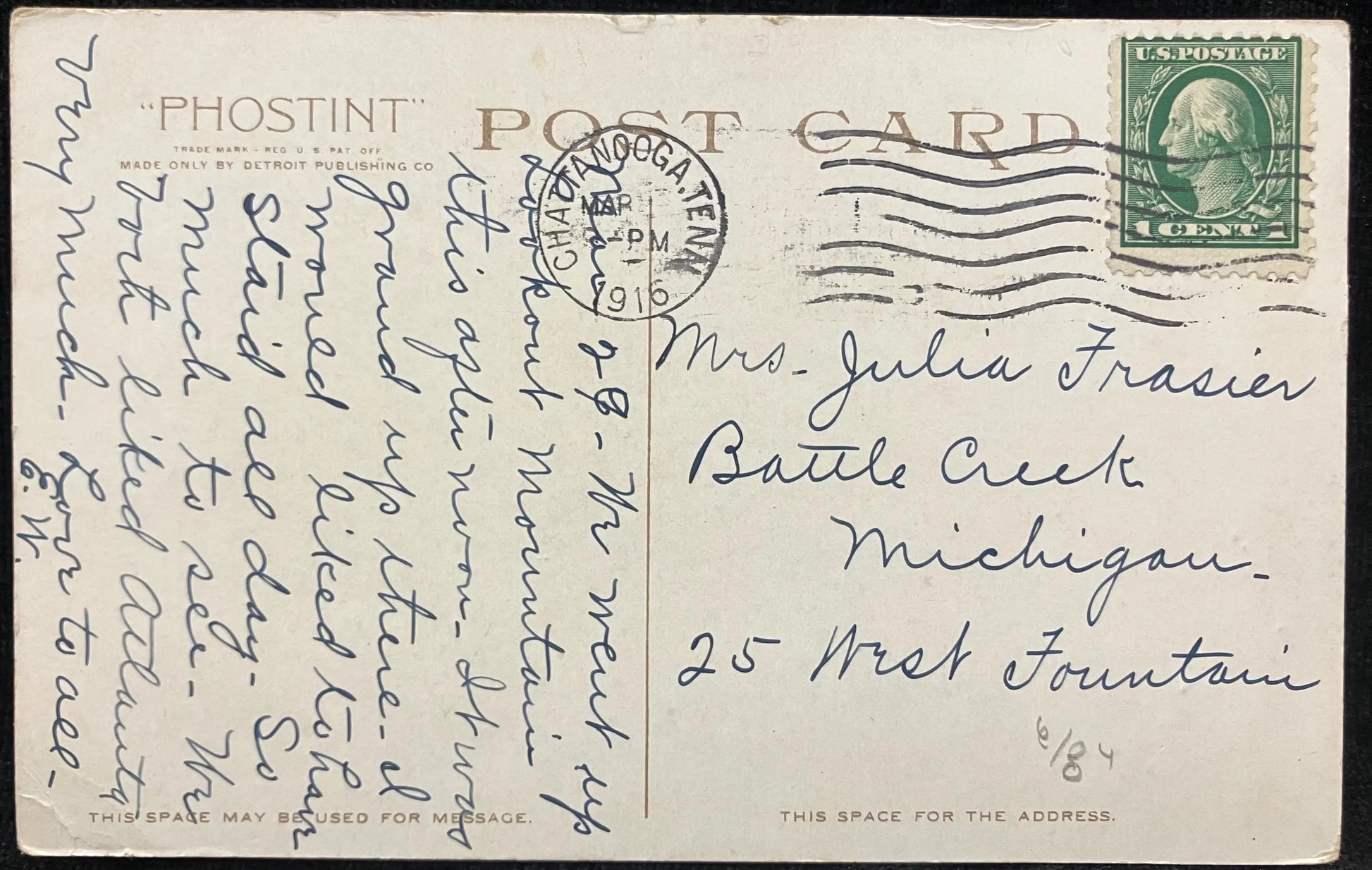 Mailed: Postmark: 1916 green one cent George Washington stamp