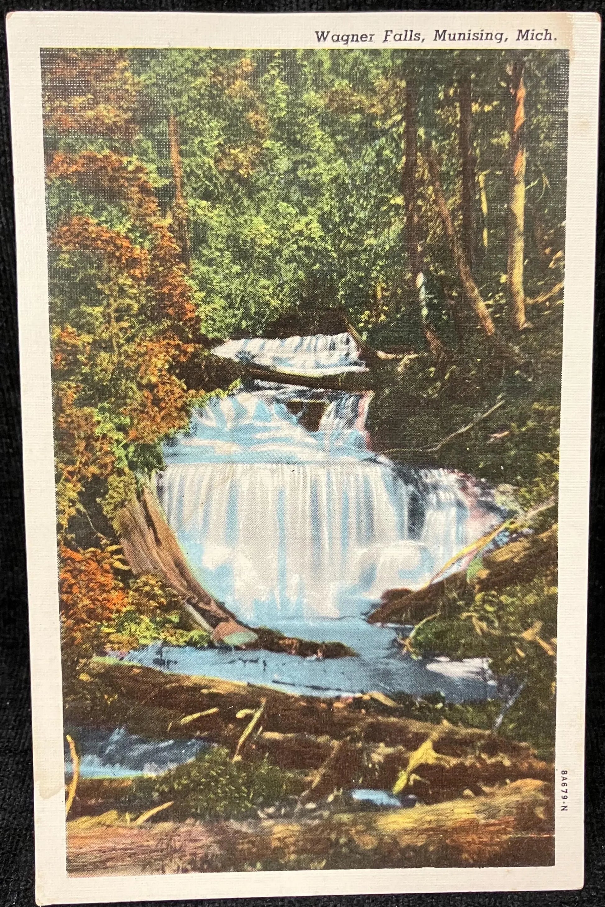 Wagner Falls, Munising, Michigan - Vintage Postcard