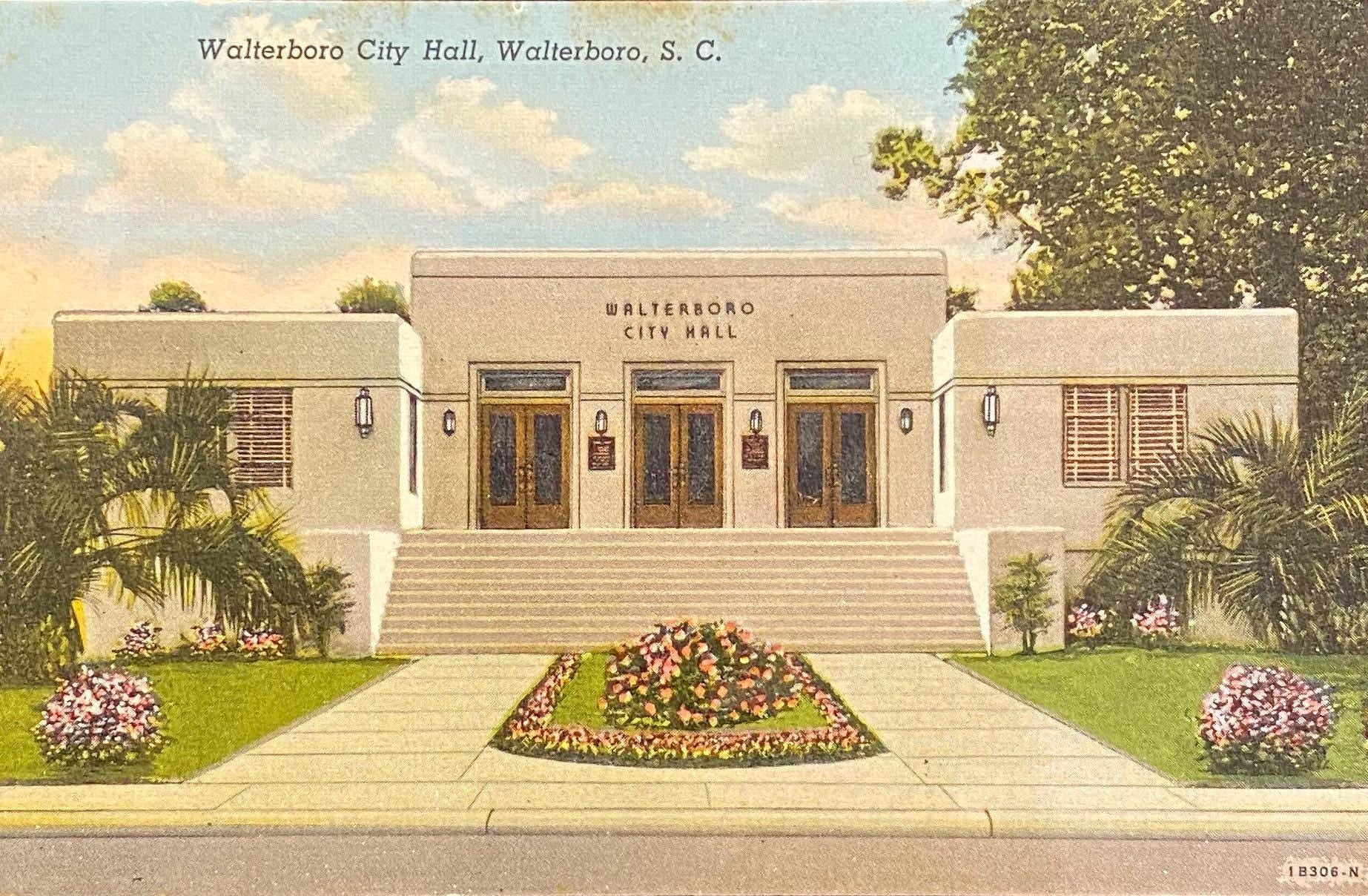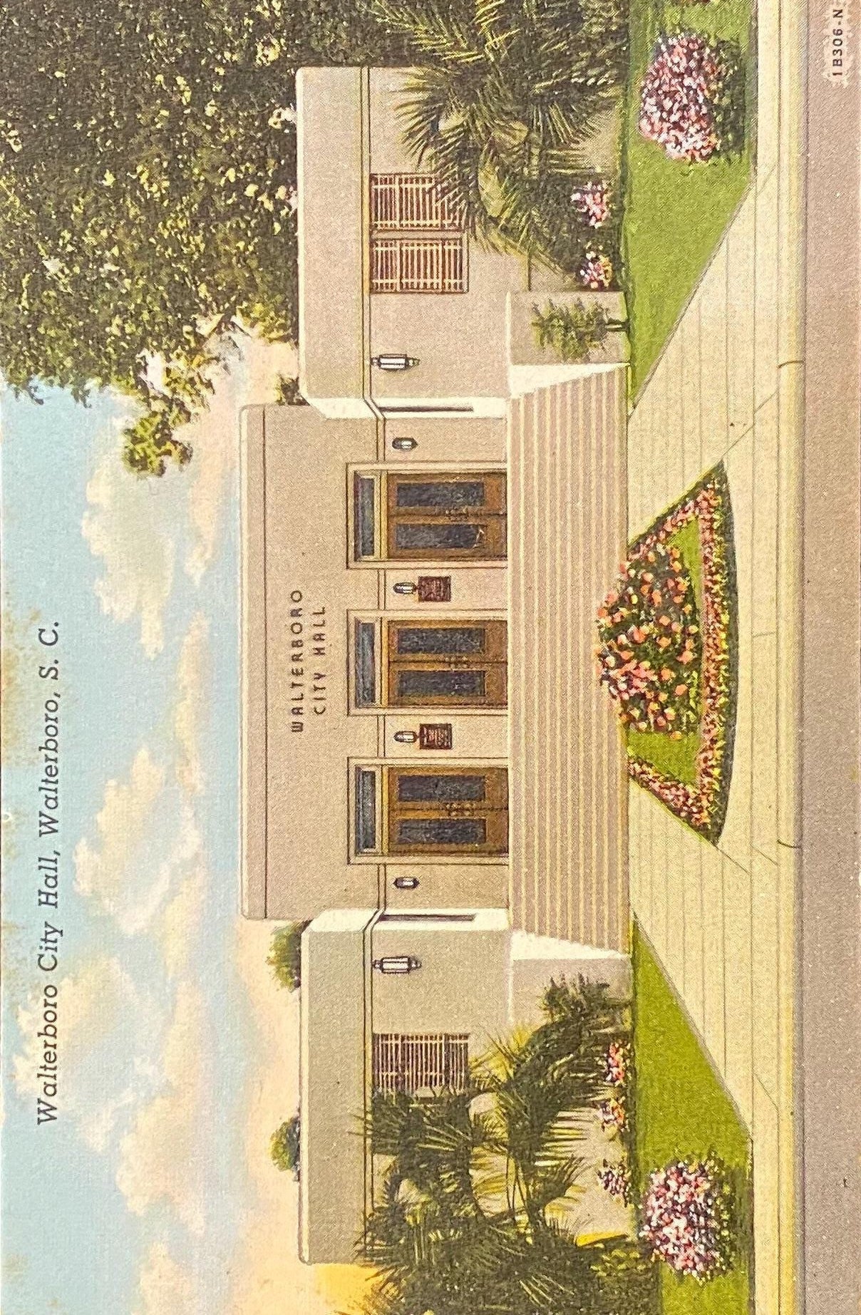 Walterboro City Hall - Walterboro, South Carolina - 1940s Linen Postcard