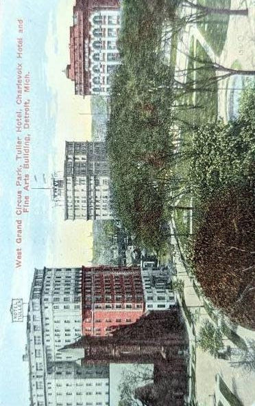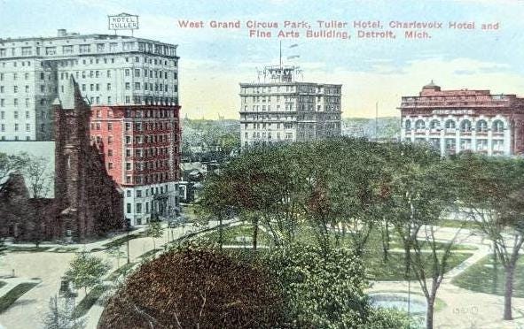 West Grand Circus Park - Tuller Hotel - Detroit, Michigan - 1912 Postcard