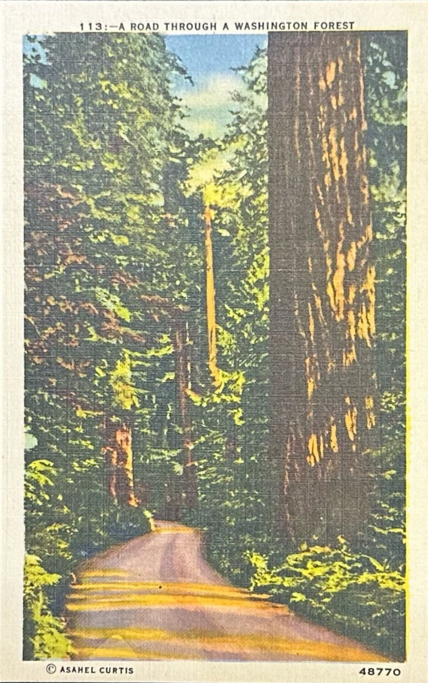 A Road through a Washington Forest - Vintage 1930s Linen Nature Postcard