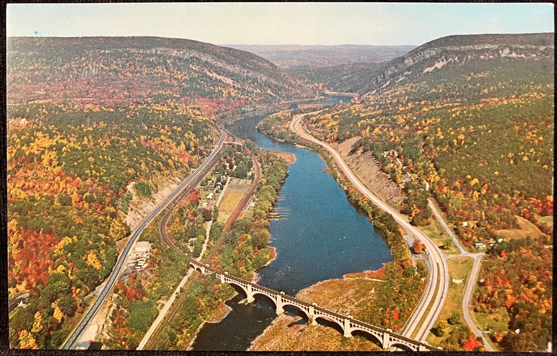 Airview of Delaware Water Gap - Lackawanna-Erie Railroad Bridge - New Jersey - 1960s Bridge Postcard