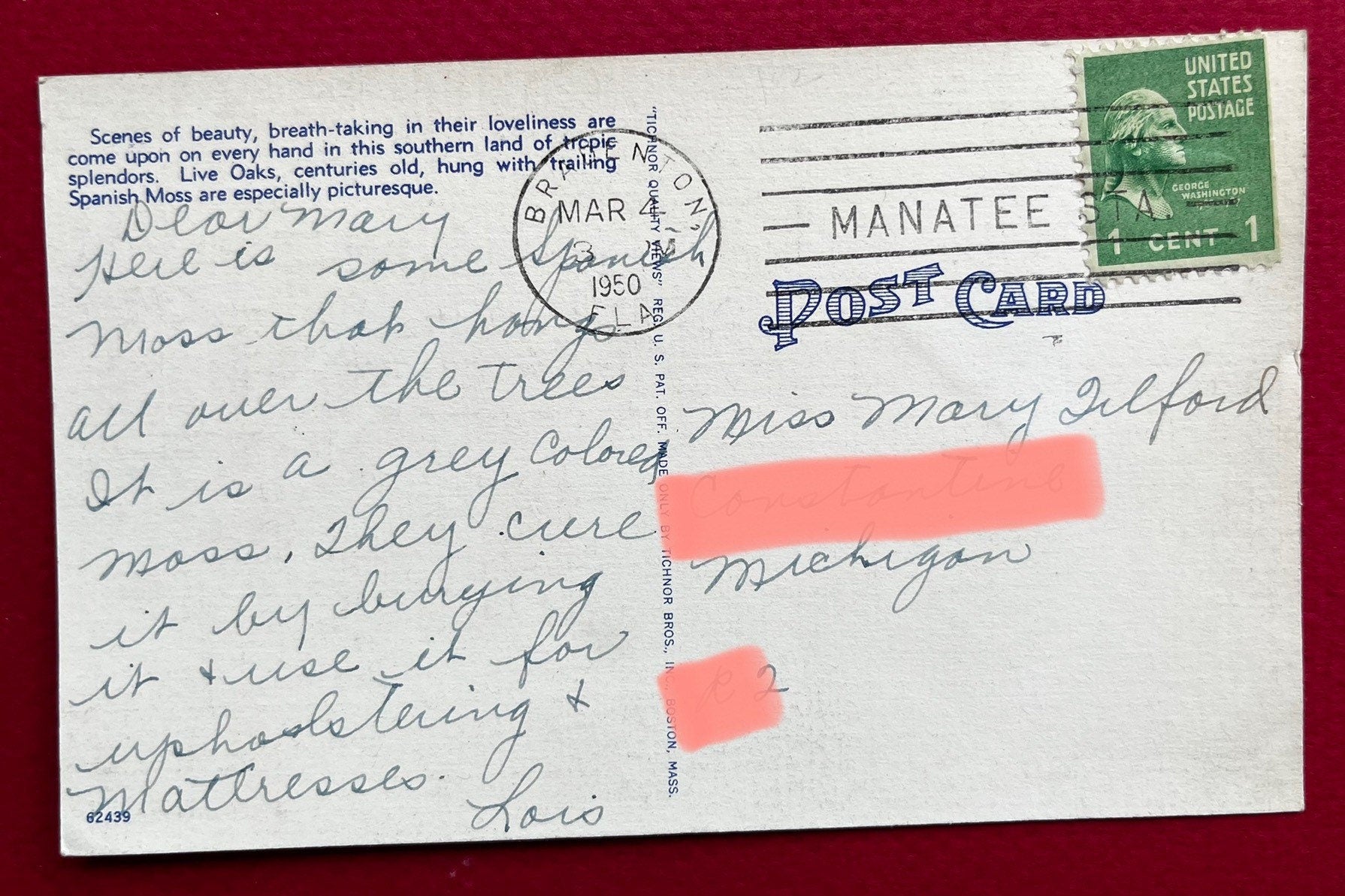 Postmark: March 4, 1950 - Bradenton, FL
