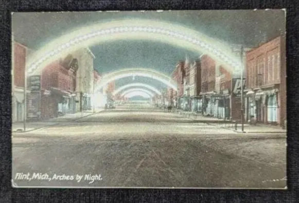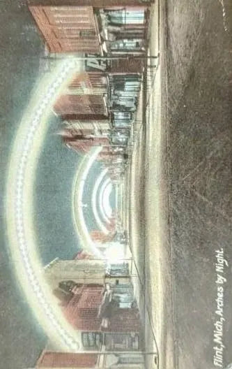 Arches by Night in Flint, Michigan - Vintage Night Scene Postcard