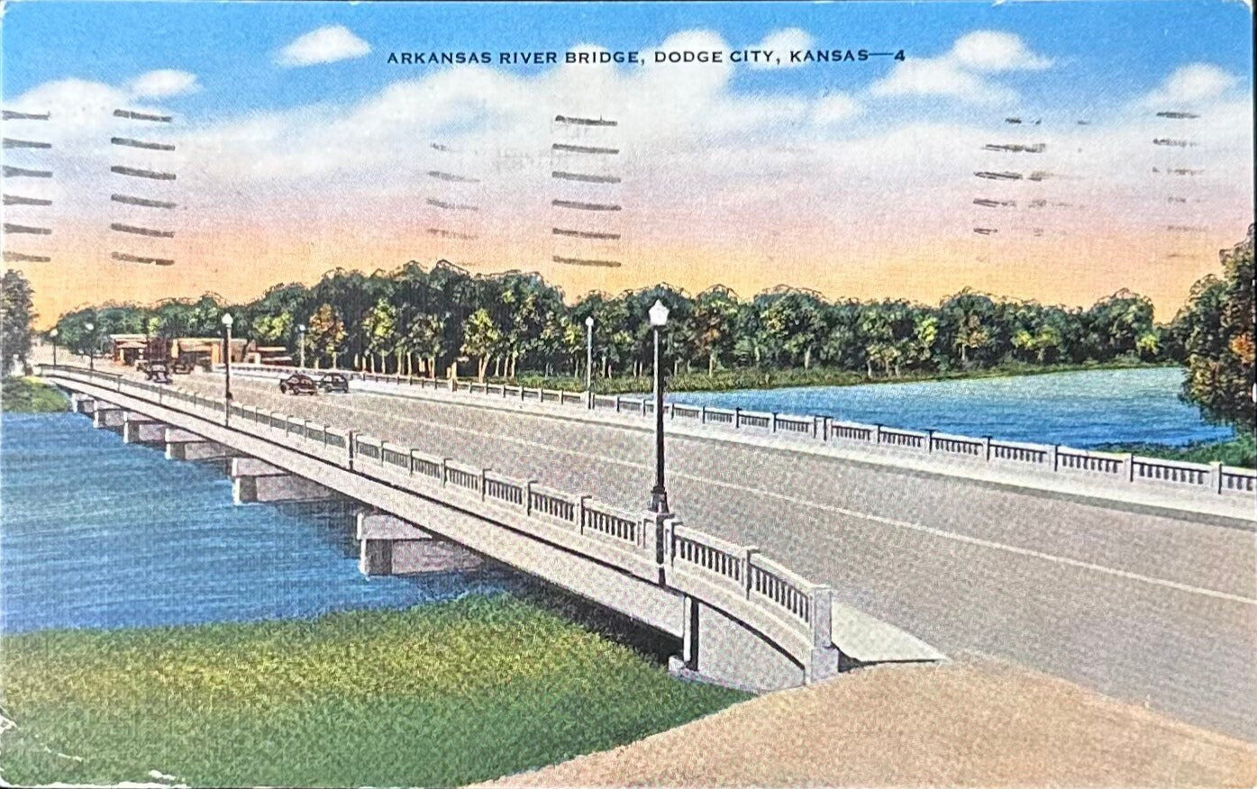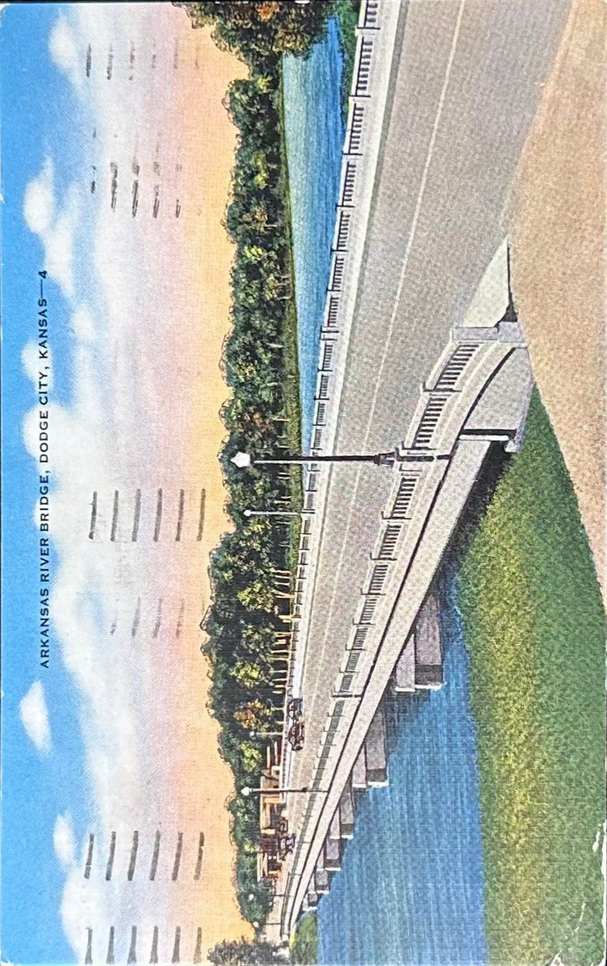 Arkansas River Bridge - Dodge City, Kansas - Linen Postcard