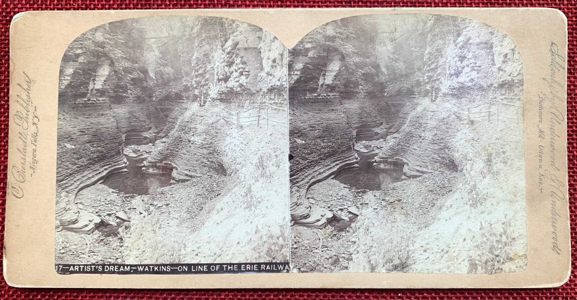 Artist's Dream – Watkins – On Line of the Erie Railway - Vintage Stereo View Card - 1880s/1809s