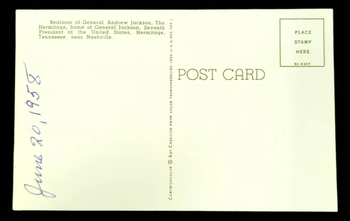 Bedroom of General Andrew Jackson, Hermitage, Tennessee - Vintage 1950s Postcard