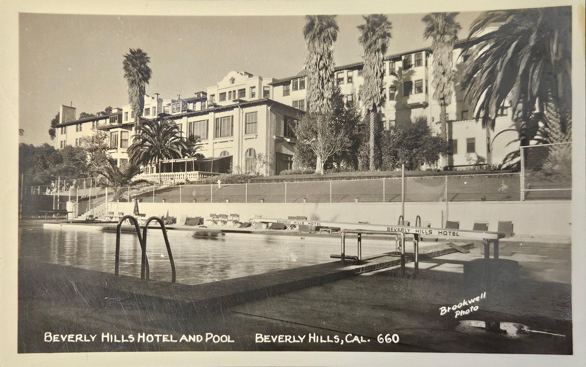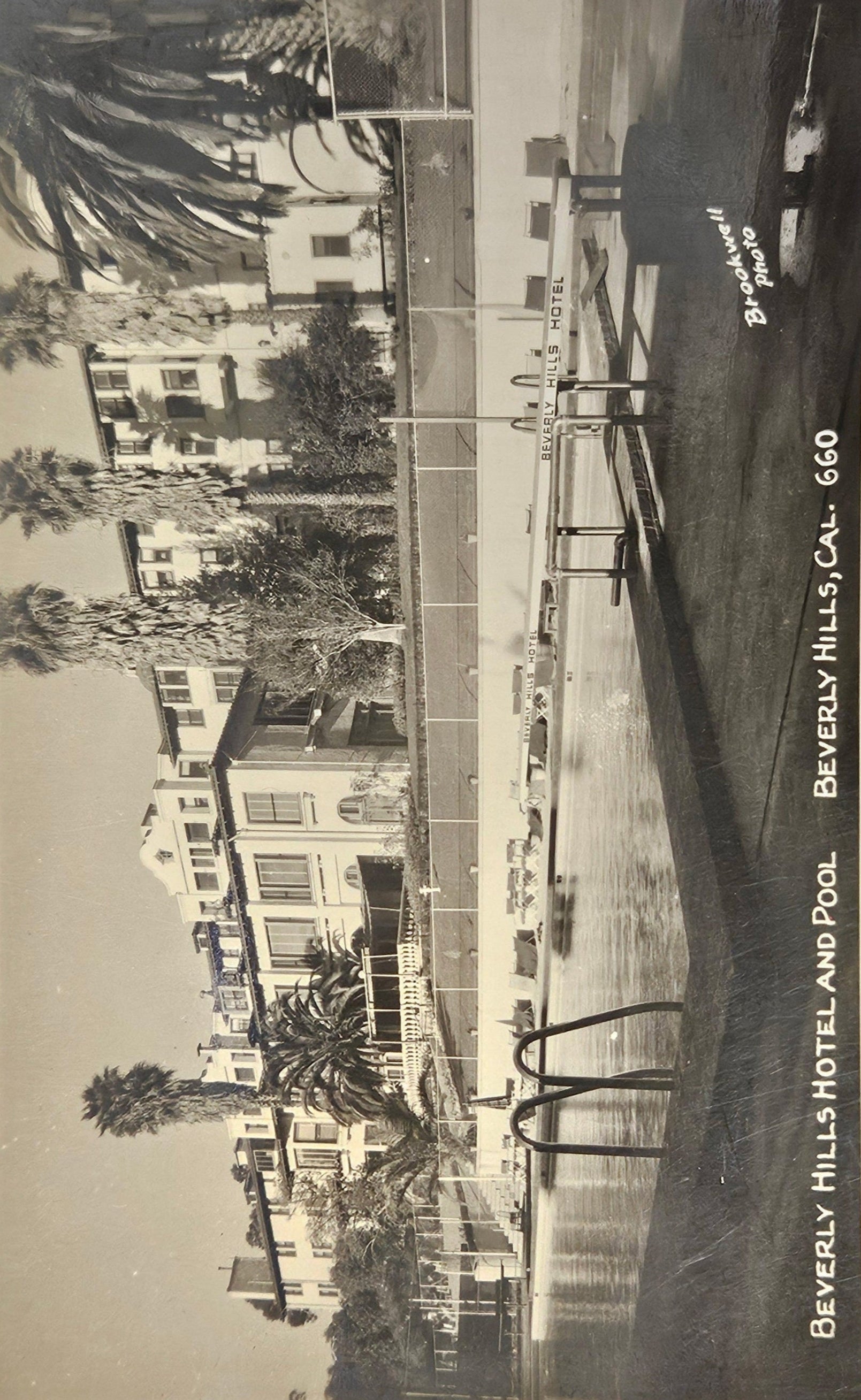 RPPC - Beverly Hills Hotel And Pool - Beverly Hills, California - Real Black and White Photo - RARE RPPC - Bob Plunkett Photo as Brookwell Photo 1940s
