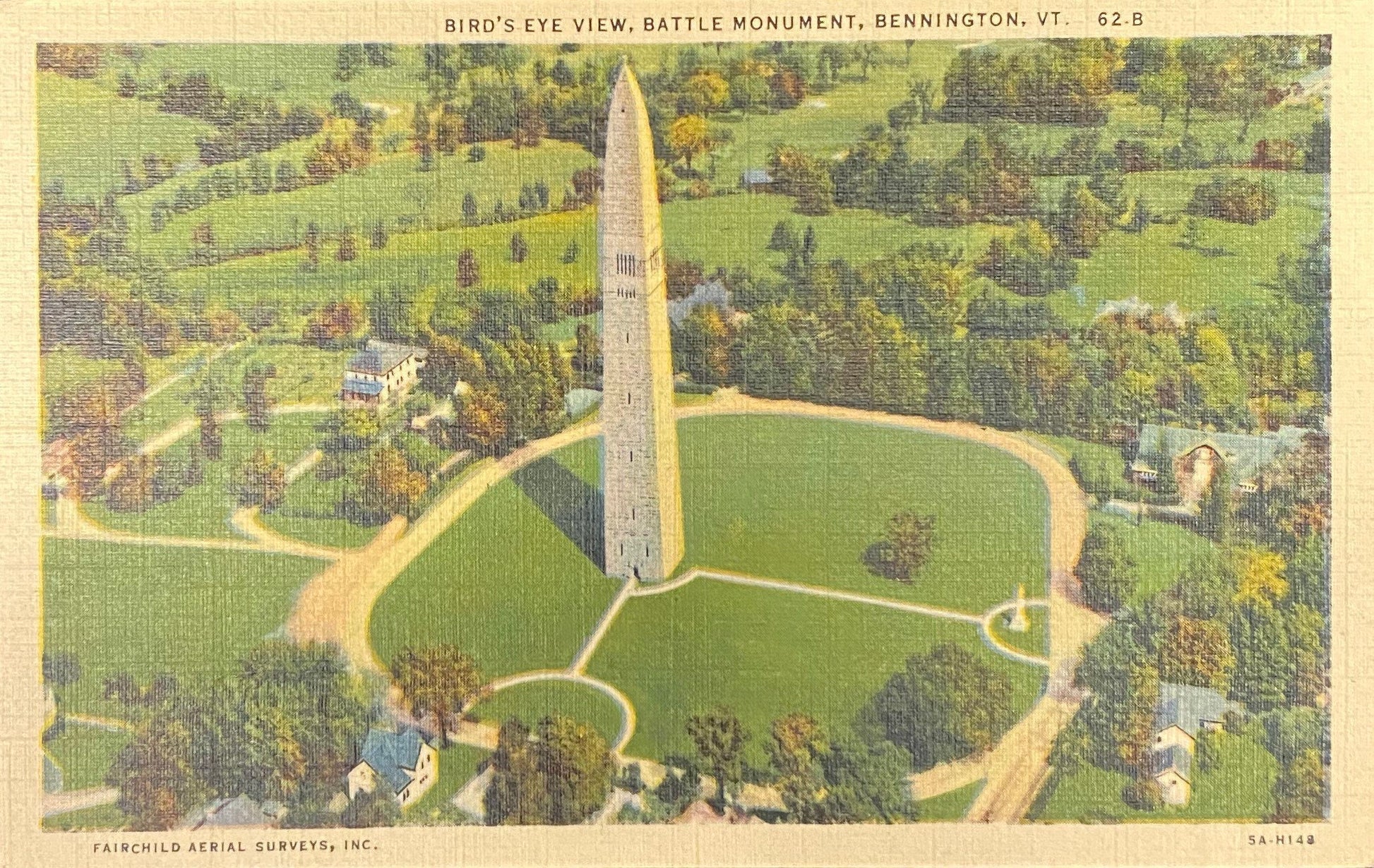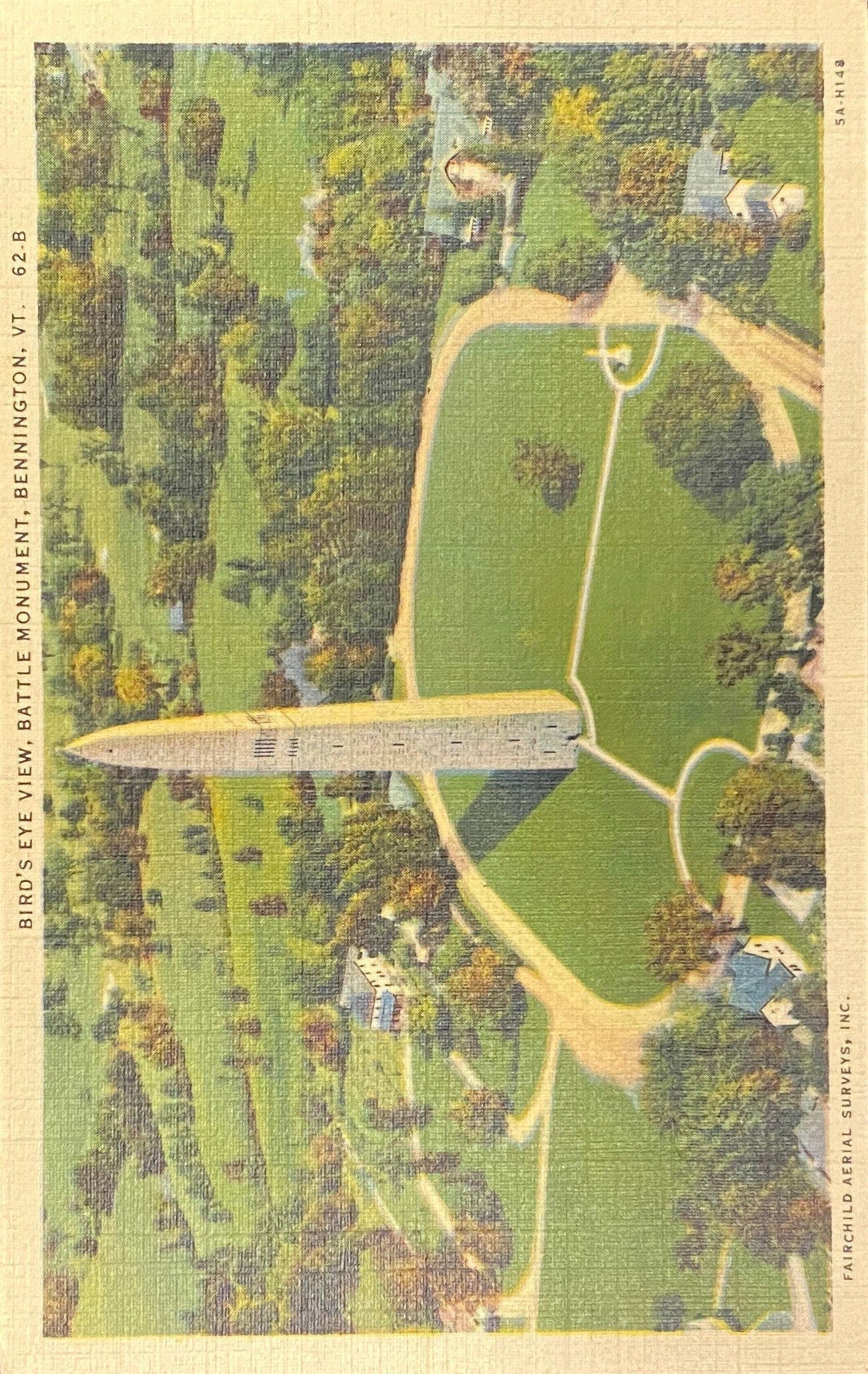 Bird's Eye View, Battle Monument, Bennington, Vermont - 1935 Linen Postcard
