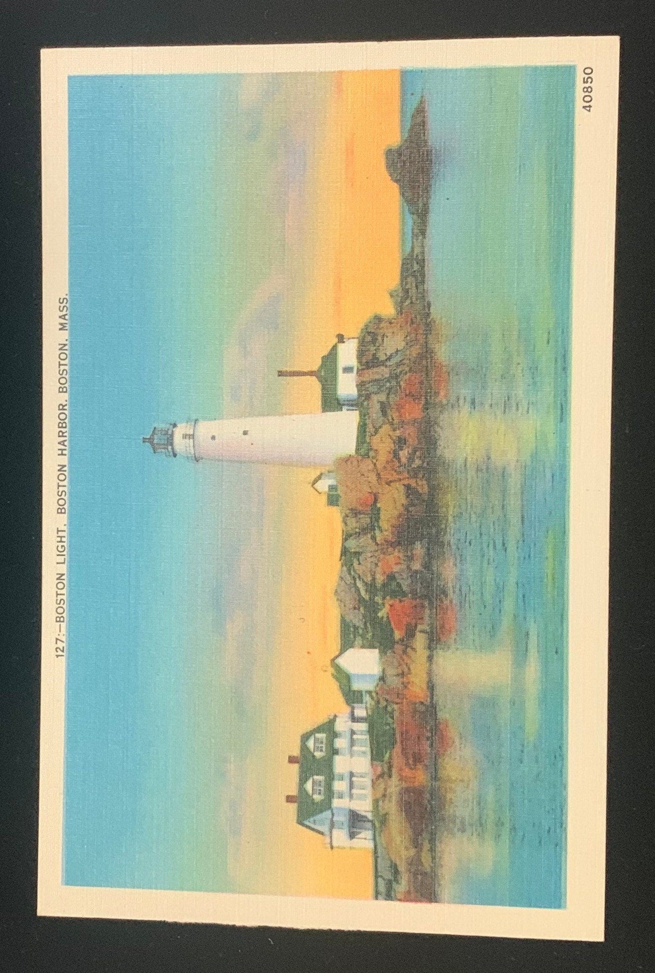 Boston Light - Boston Harbor - Boston, Massachusetts - 1940s Linen Postcards