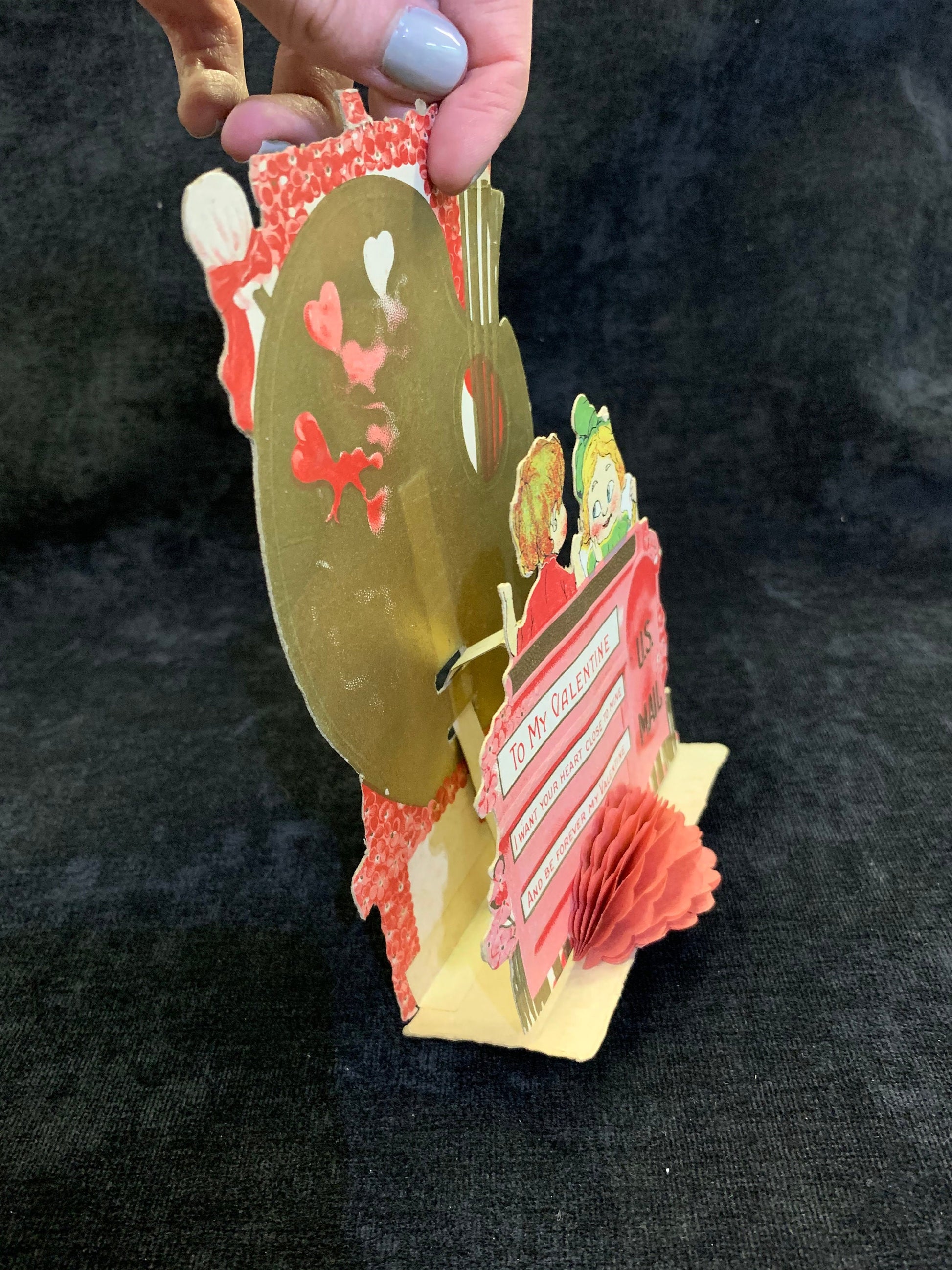 Boy and Girl in Mailbox Honeycomb Fold Out Vintage Valentine Card 1930's