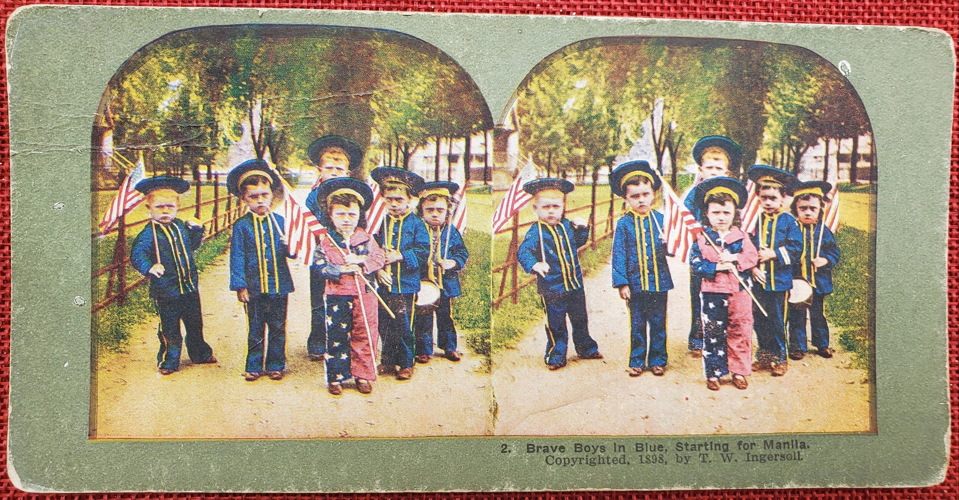 Brave Boys in Blue, Vintage Stereo View Card, Late 1800s