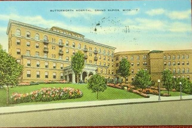 Butterworth Hospital - Grand Rapids, Michigan - Vintage Linen Postcard