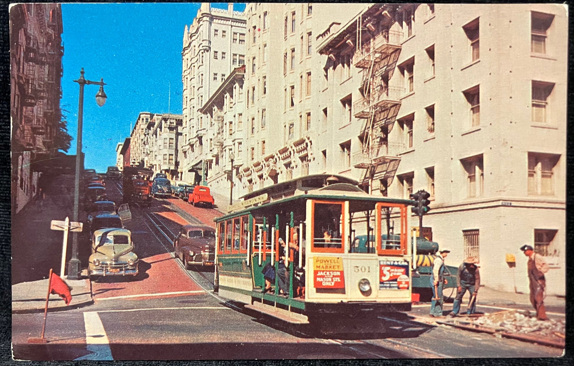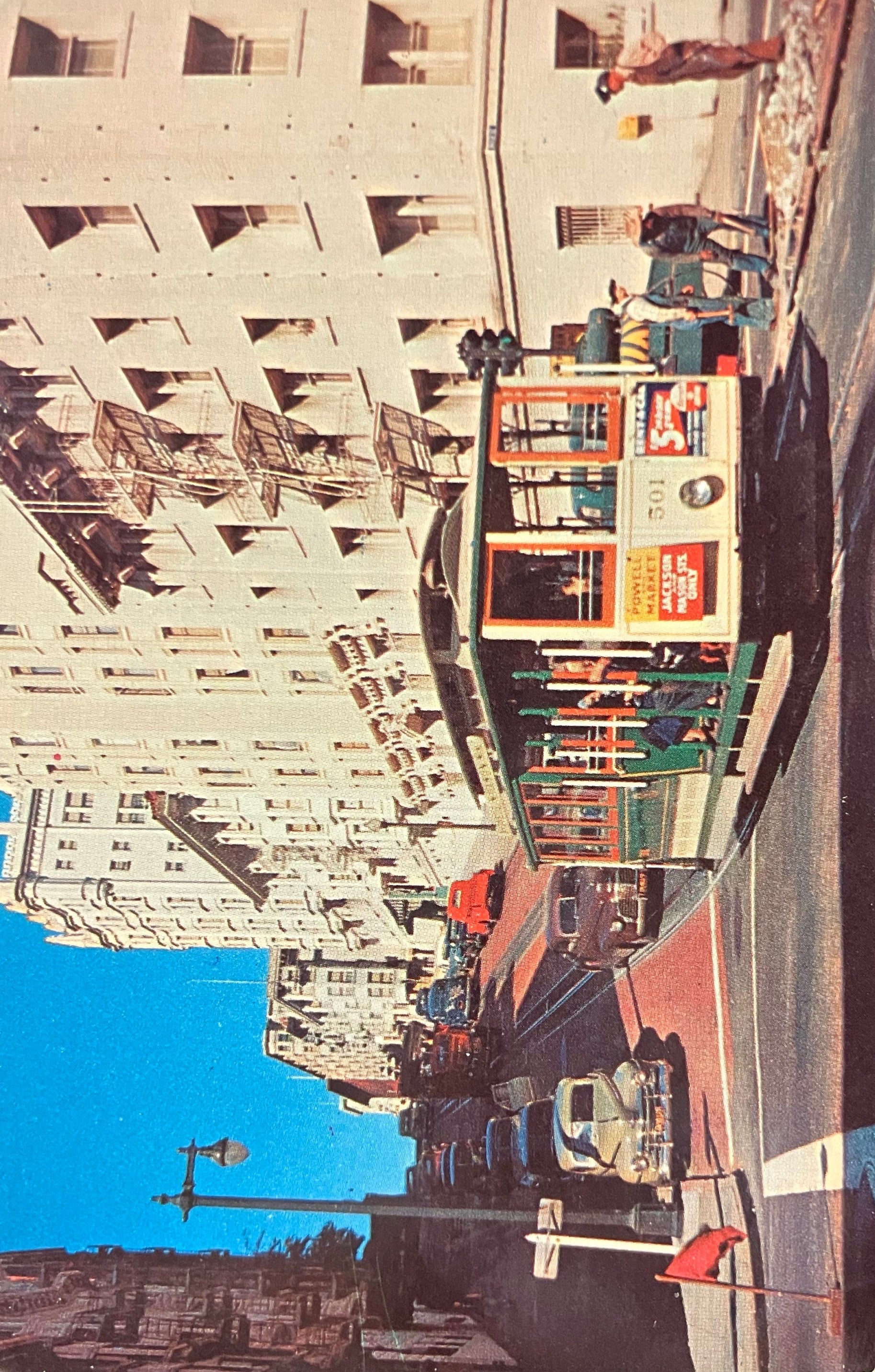 On back: San Francisco The famous cable car, a number one attraction to all visitors, has been retained by the city fathers for its quaintness.