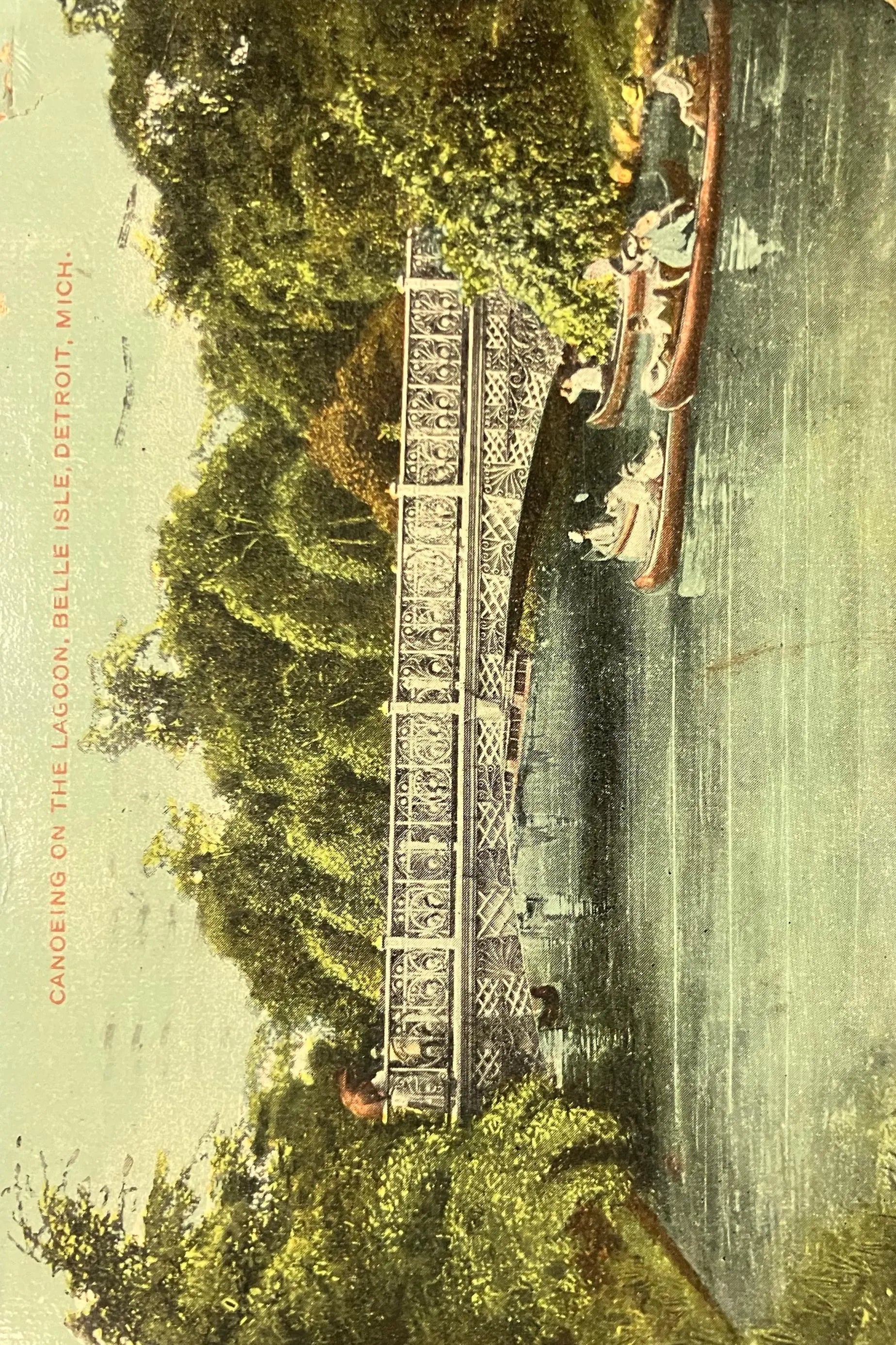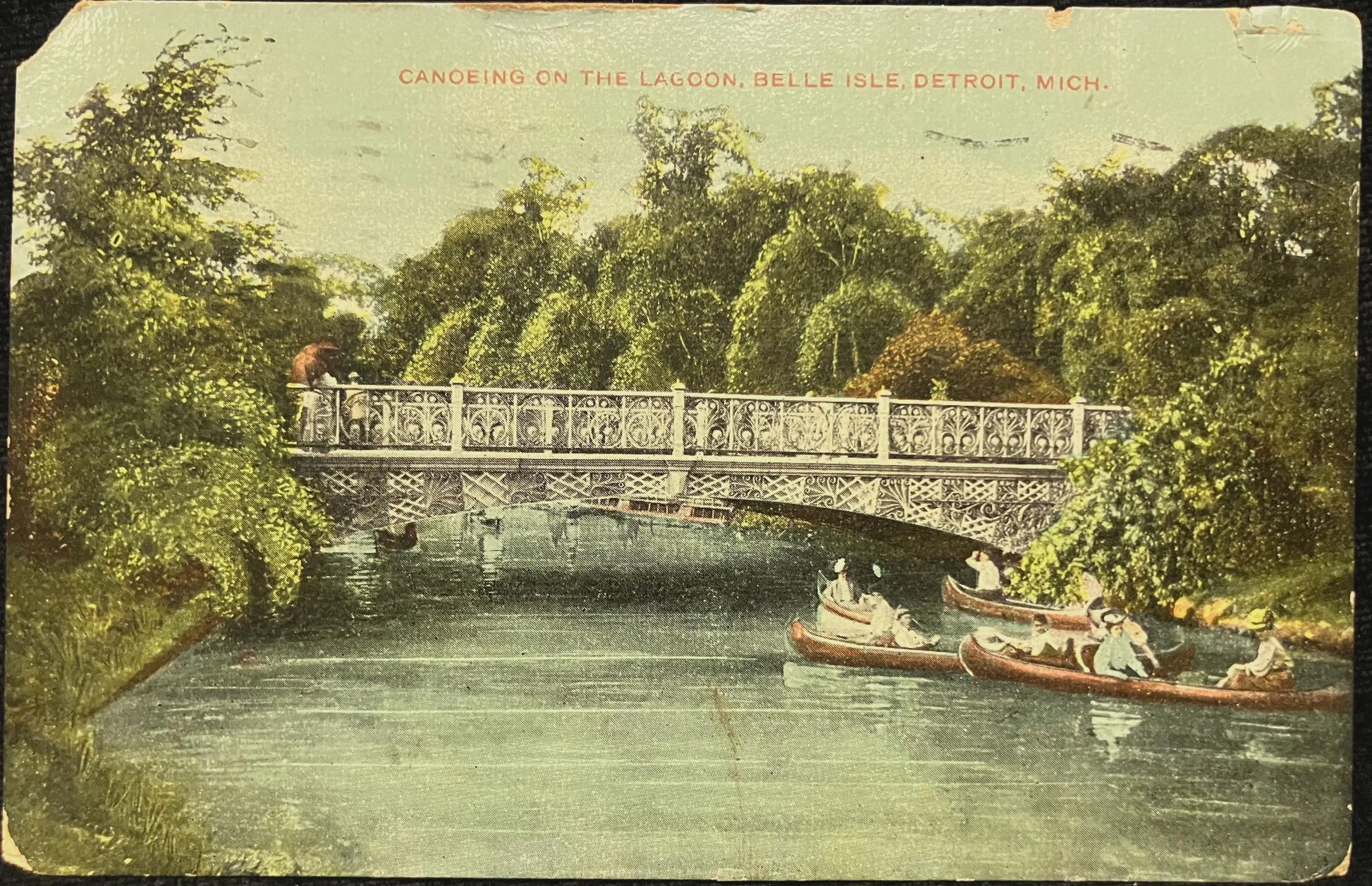 On front: Canoeing on the Lagoon, Belle Isle, Detroit, Mich.