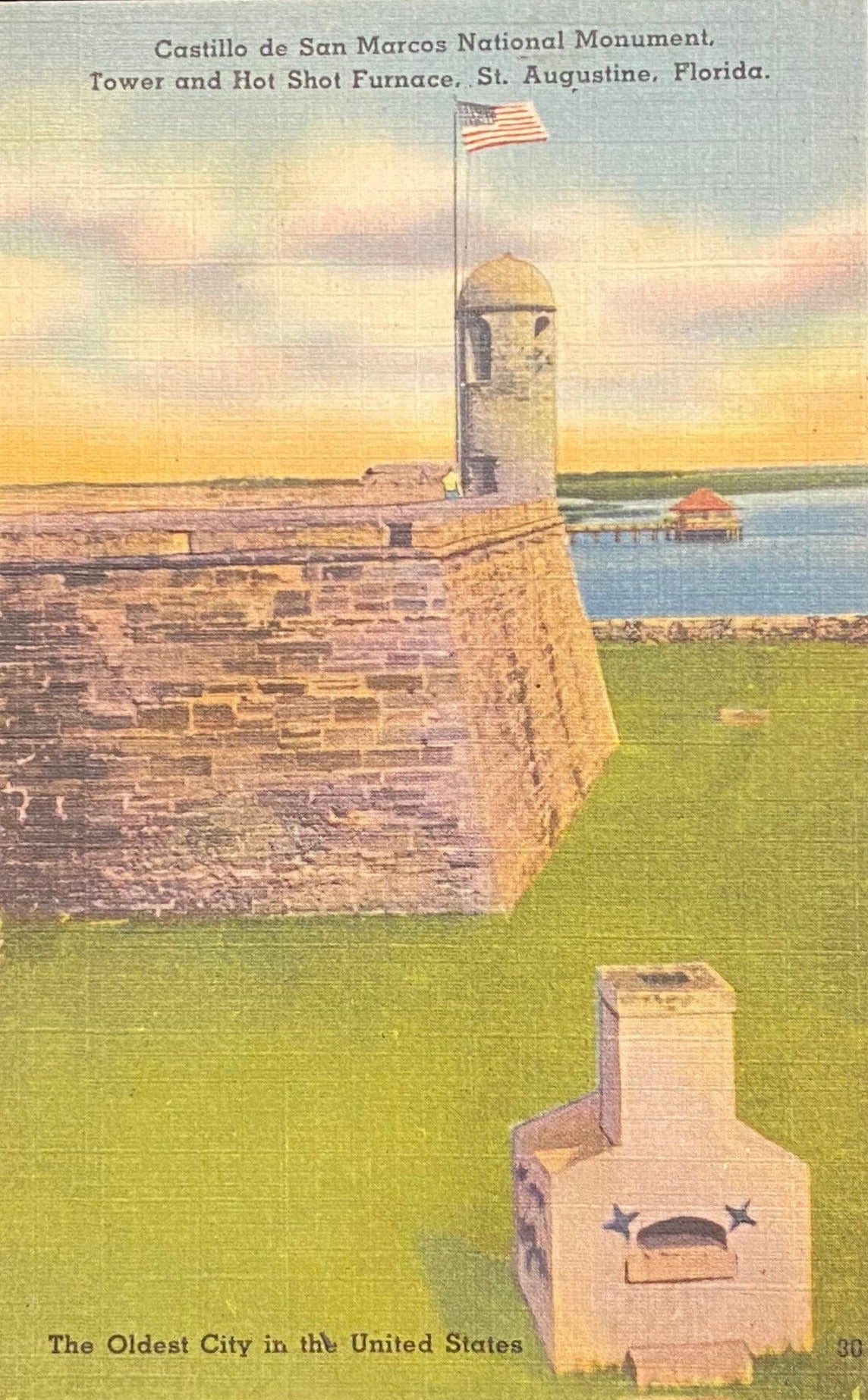 Castillo de San Marcos National Monument - Tower and Hot Shot Furnace - St. Augustine, Florida - 1940s Linen Postcard