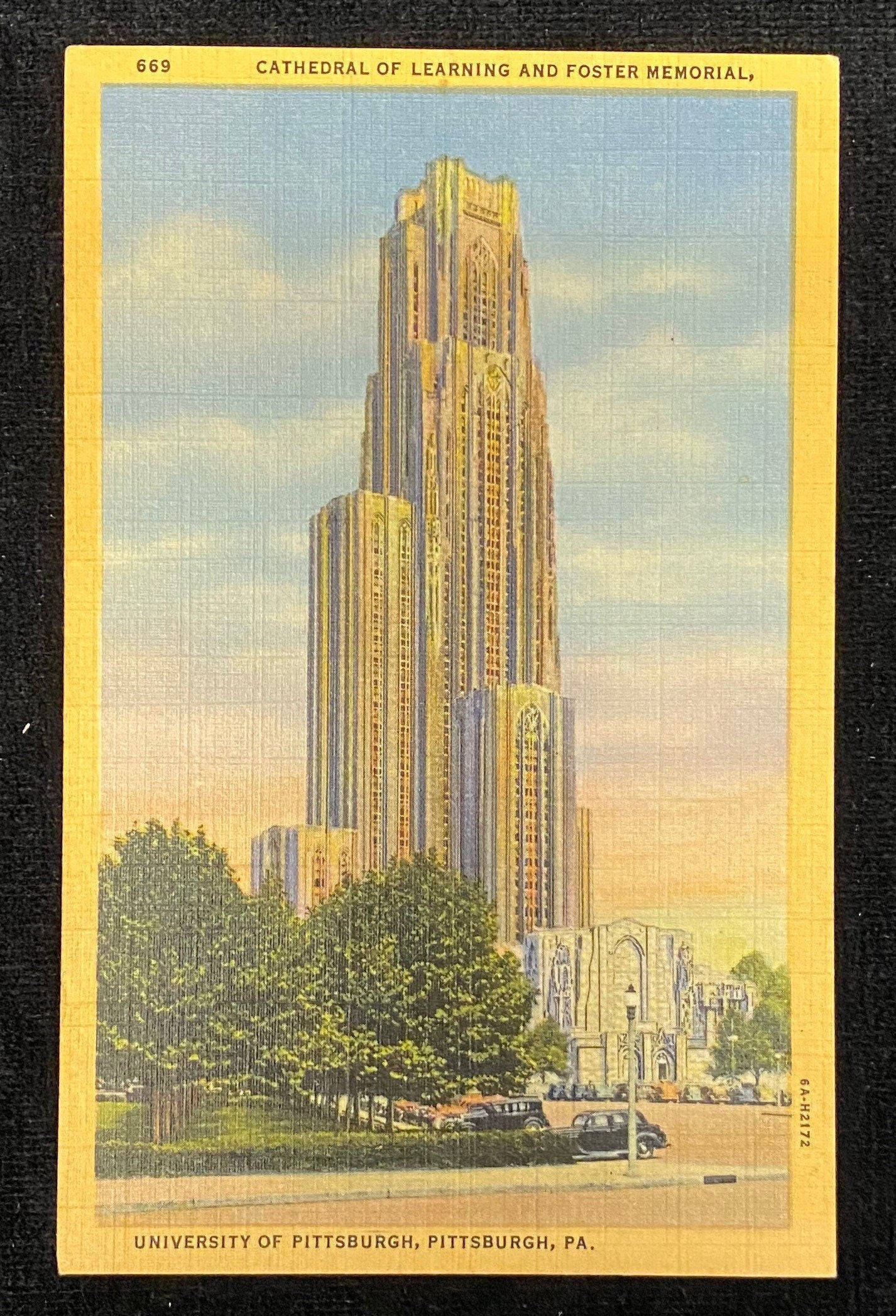 Cathedral of Learning - Foster Memorial - University of Pittsburgh, Pennsylvania - 1936 Linen Postcard