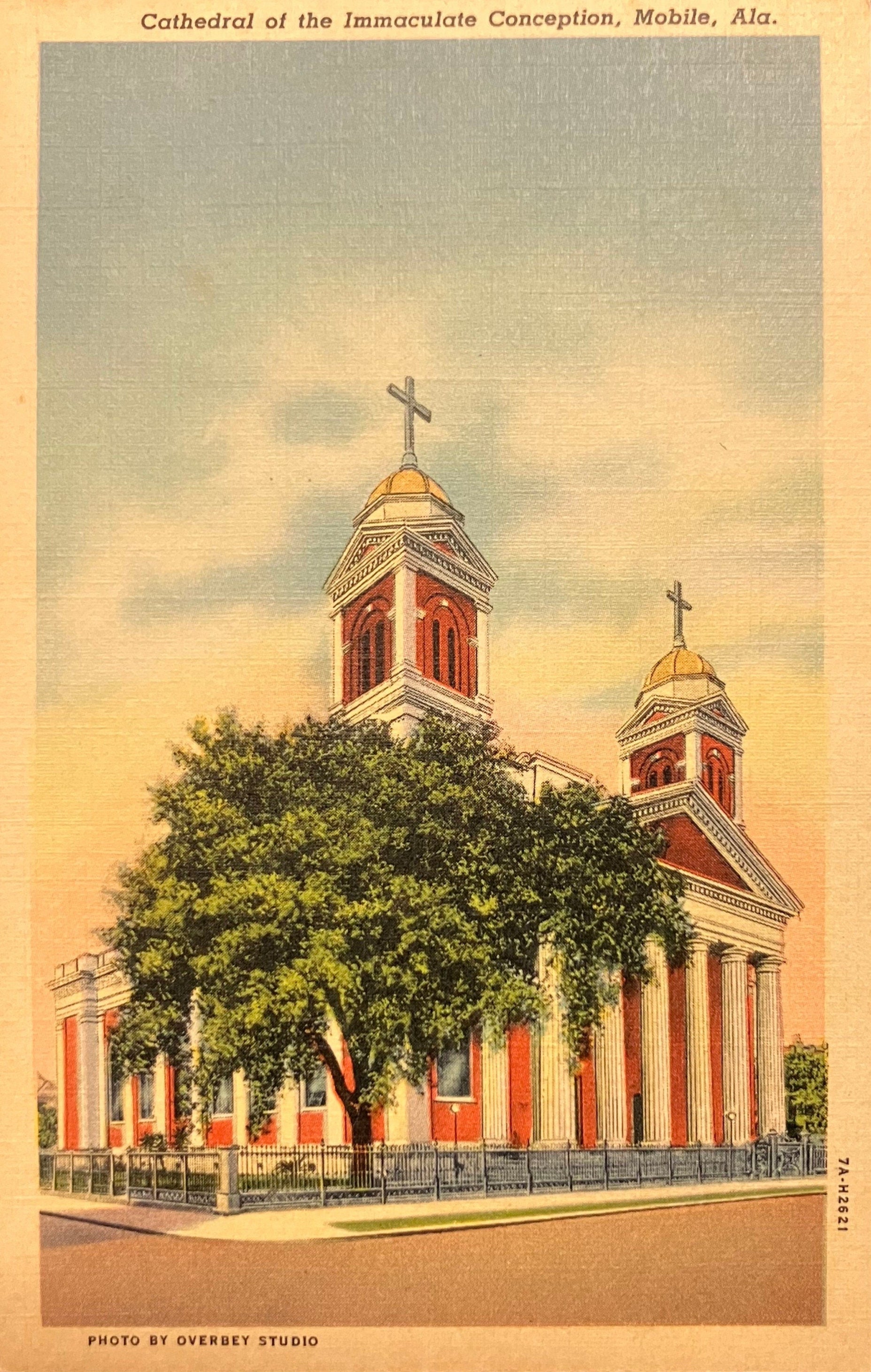 On front: “Cathedral of the Immaculate Conception, Mobile, Ala. Photo by Overbey Studio”