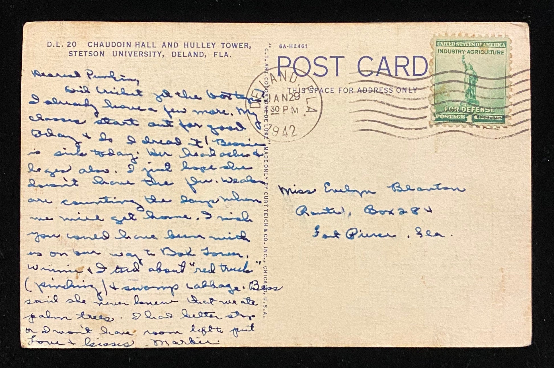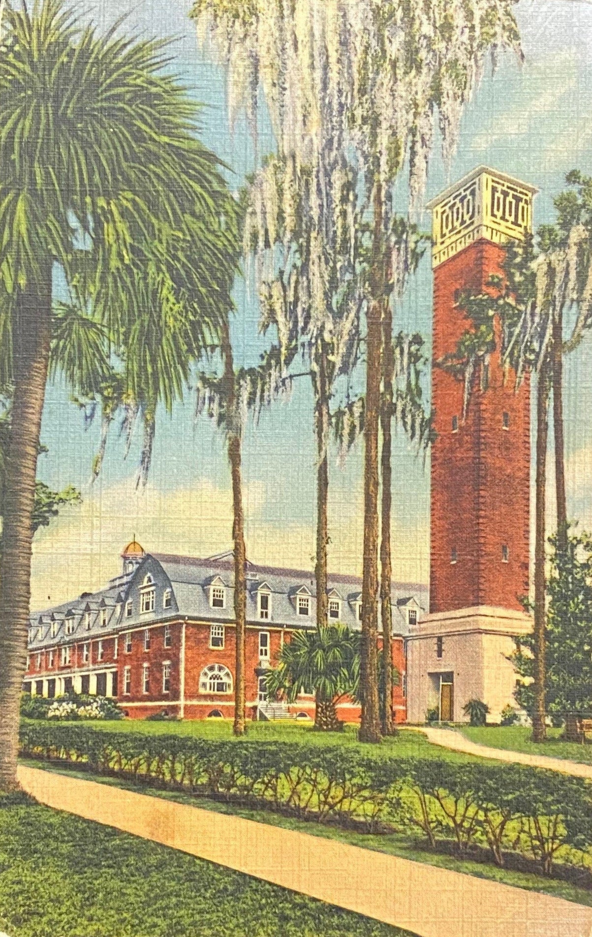 Chaudoin Hall and Hulley Tower - Stetson University - Deland, Florida - 1942 Linen Postcard