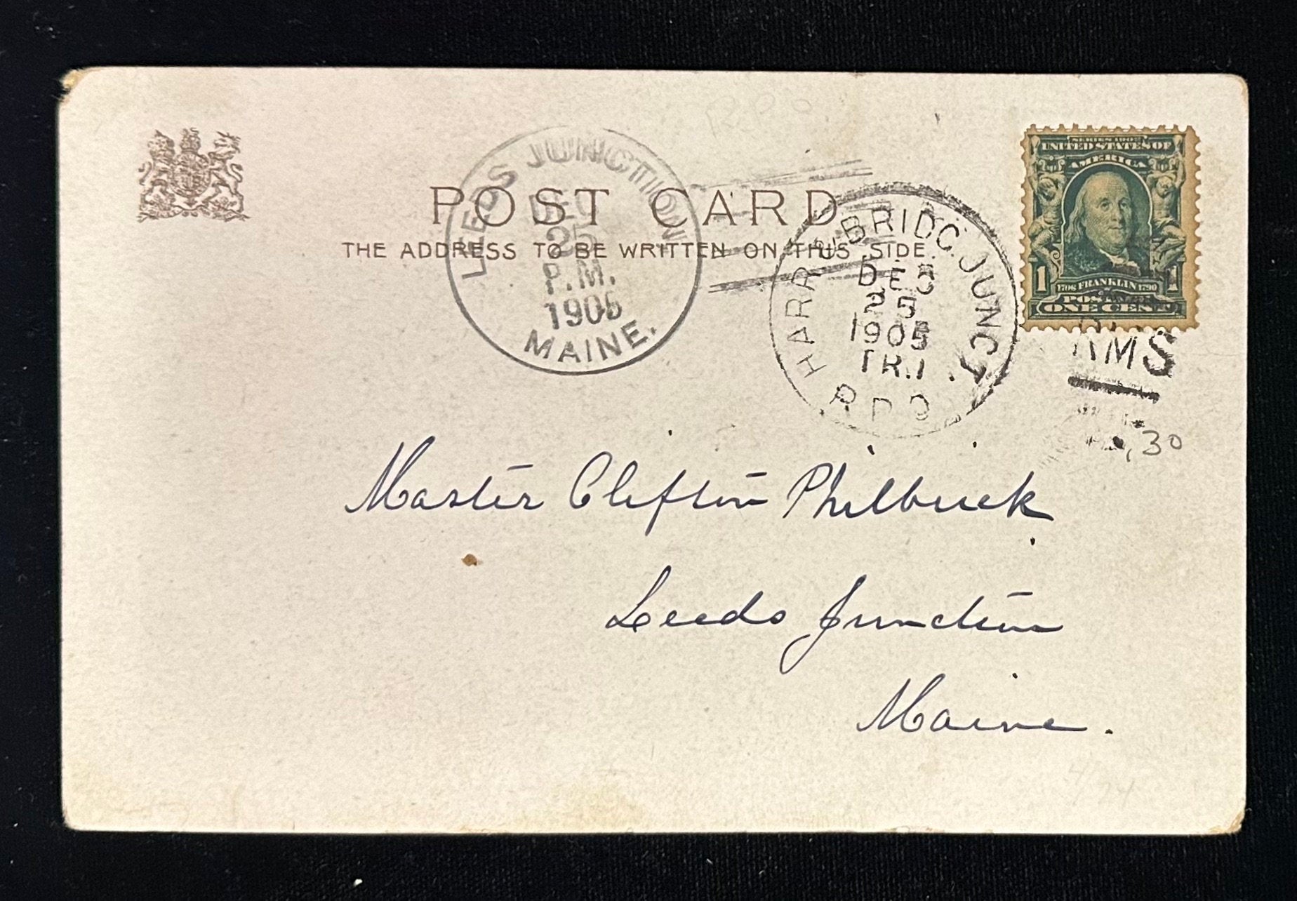 Mailed: Posted on December 25th, 1905 from Leeds Junction, Maine