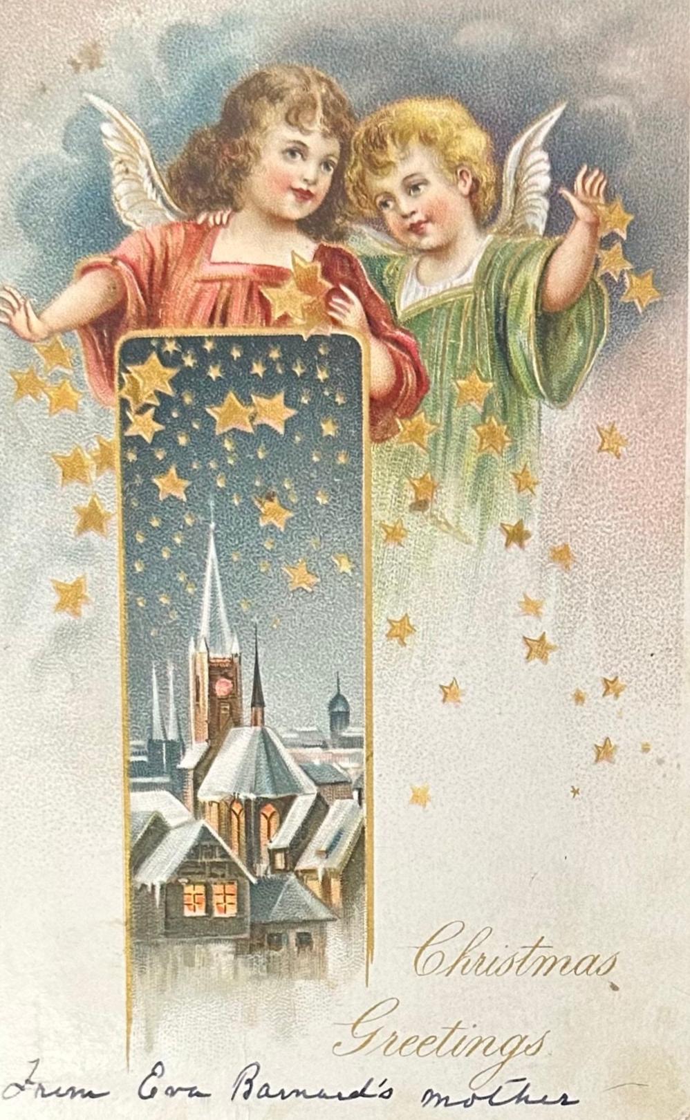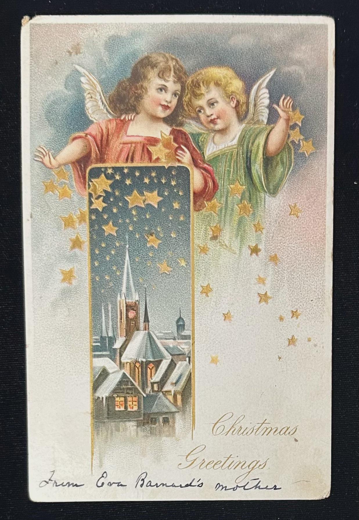 Christmas Greetings With Angels and Church- Vintage 1905 Address onlyPostcard