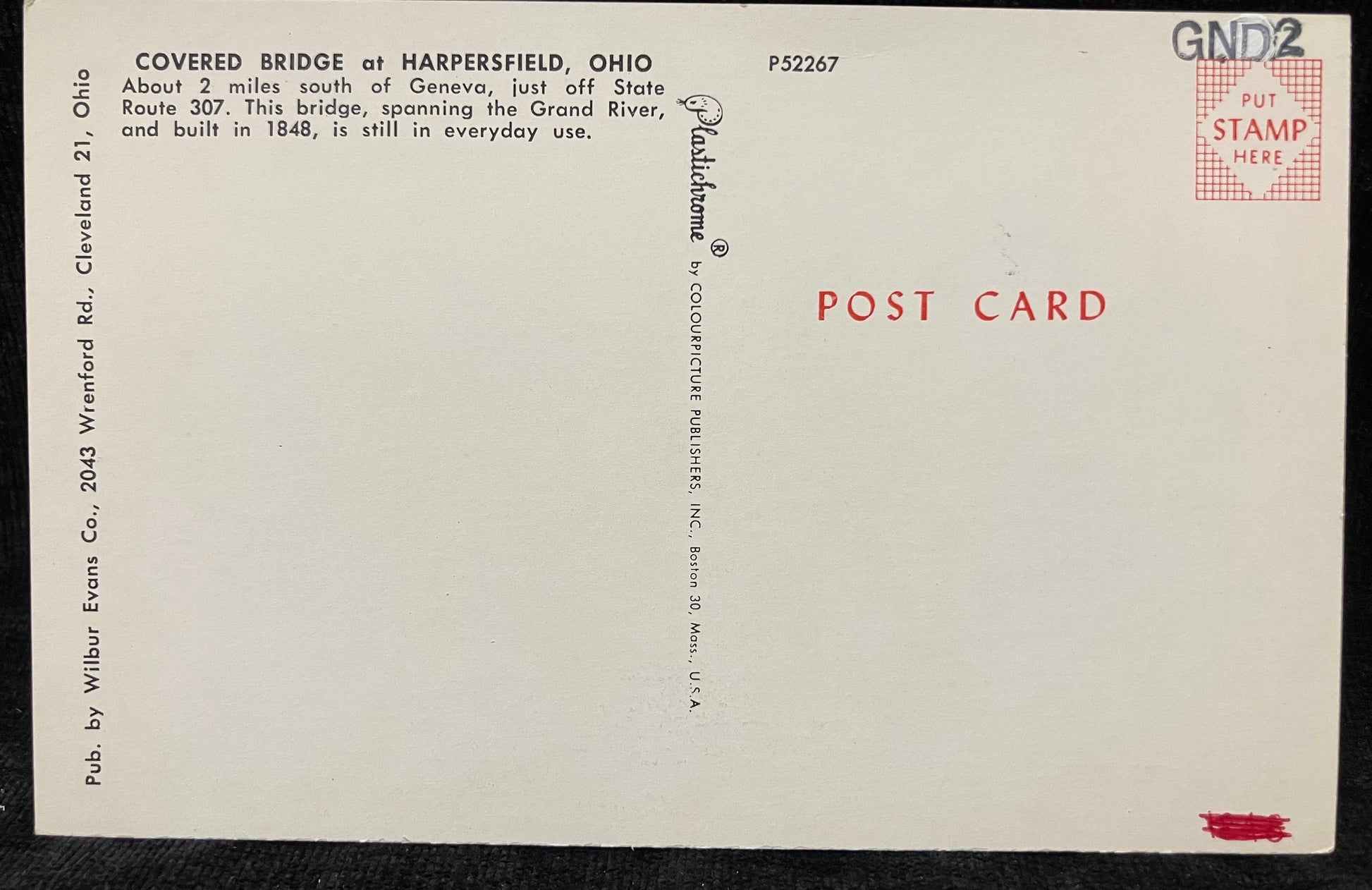 Covered Bridge at Harpersfield, Ohio - Vintage Covered Bridge Postcard
