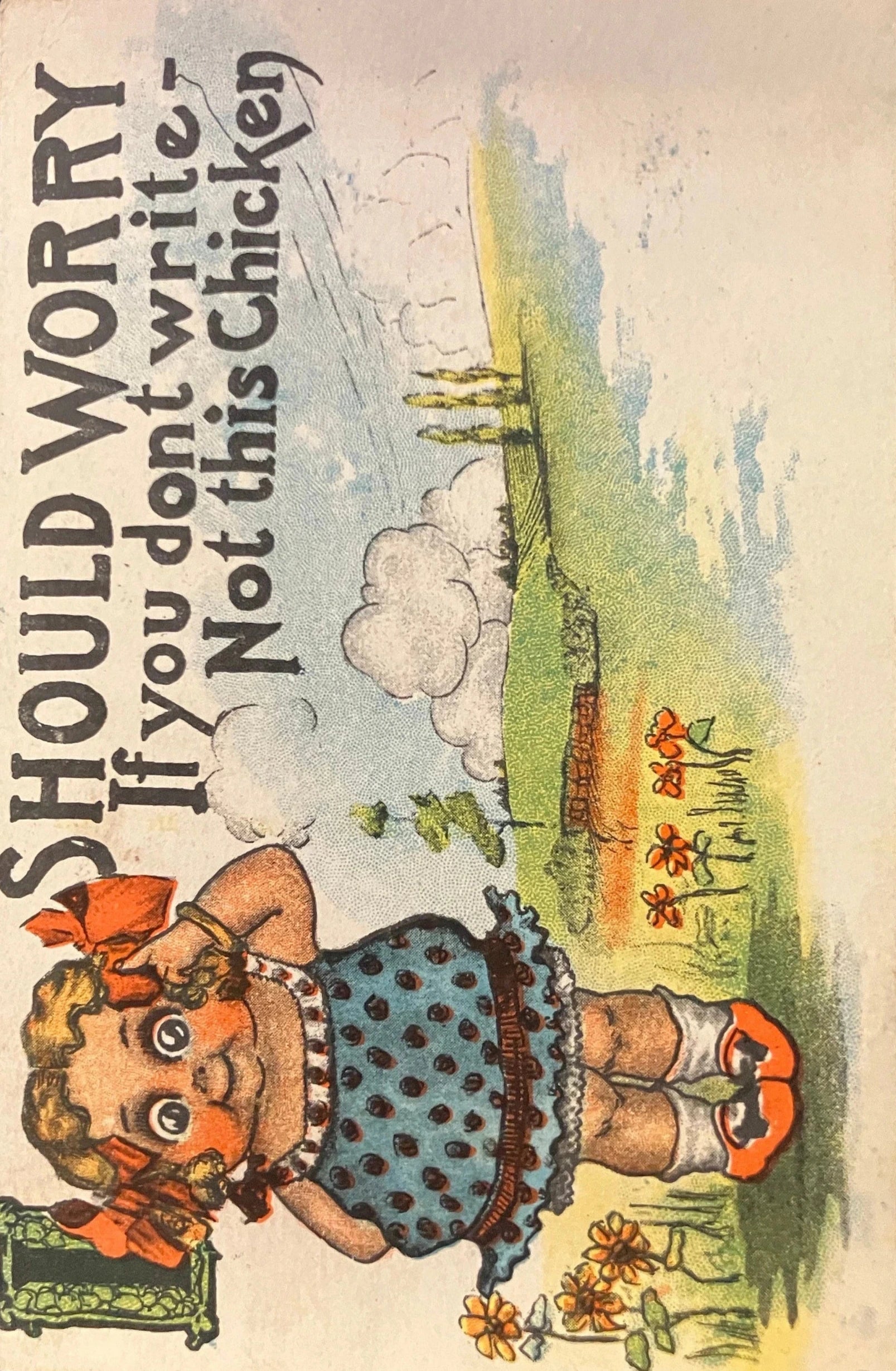 I Should Worry If you Don’t Write Not this Chicken - Funny Vintage Postcard