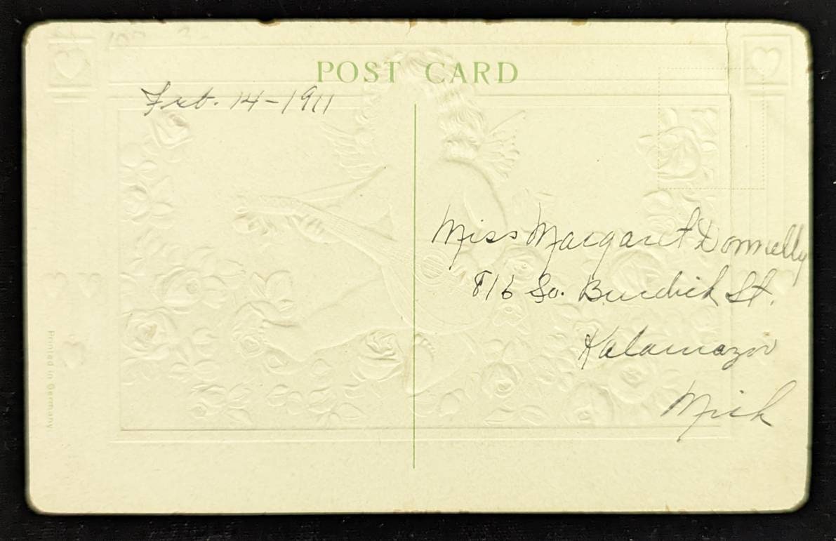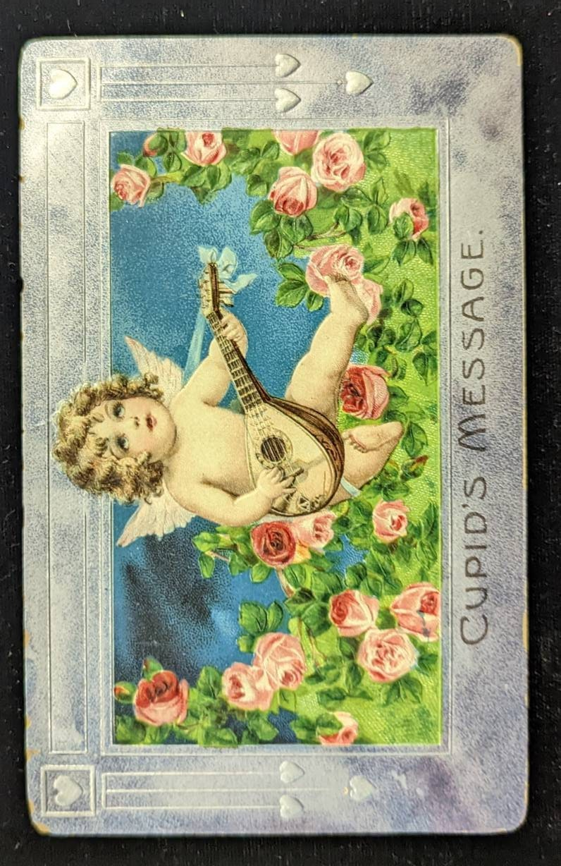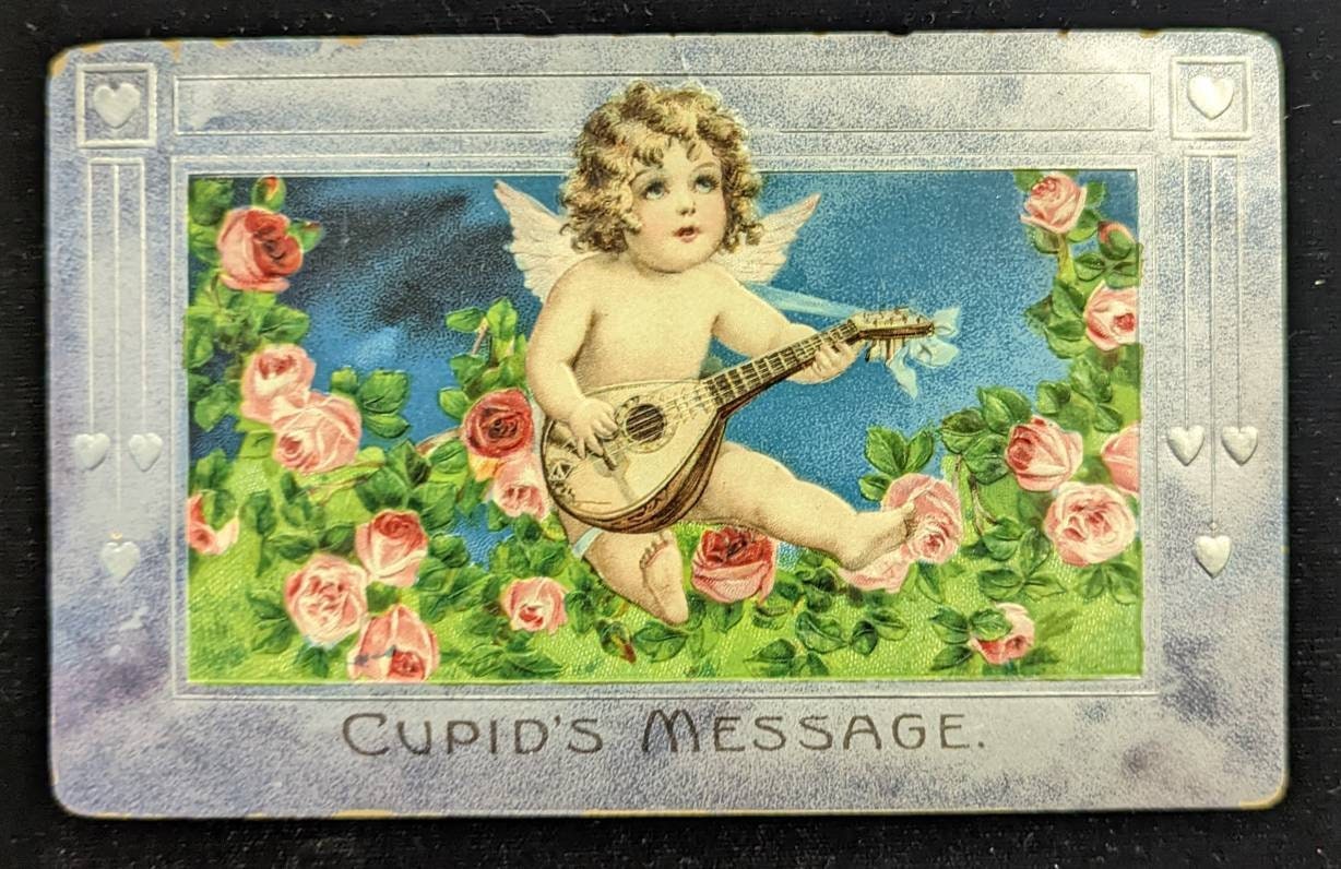 Cupid's Message With Cupid Playing the Guitar - Vitnage Valentine Postcard