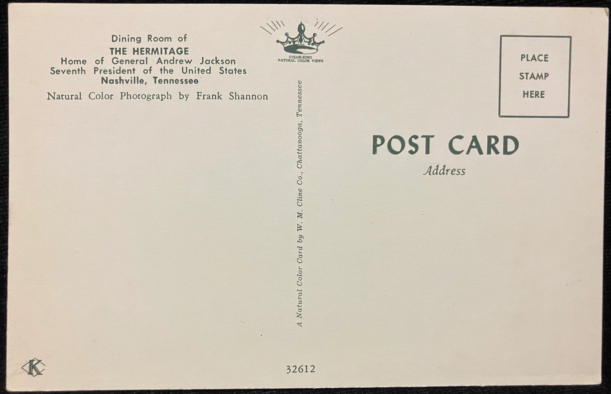 Dining Room at the Hermitage Home in Hermitage, Tennessee - Photo by Frank Shannon - Vintage American History Postcard