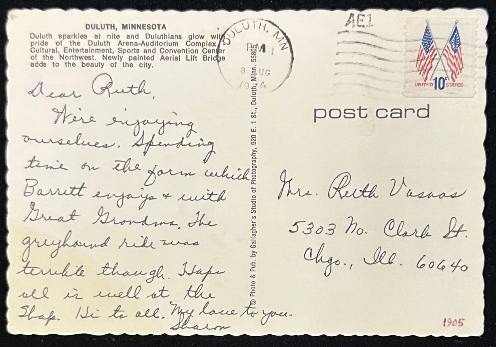 Mailed: Posted on August 8, 1974 from Duluth, Minnesota