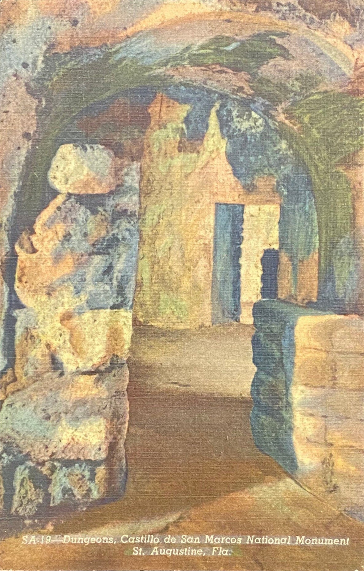 Dungeons, Castillo de San Marcos National Monument St. Augustine, Fla. - 1948 Linen Postcard