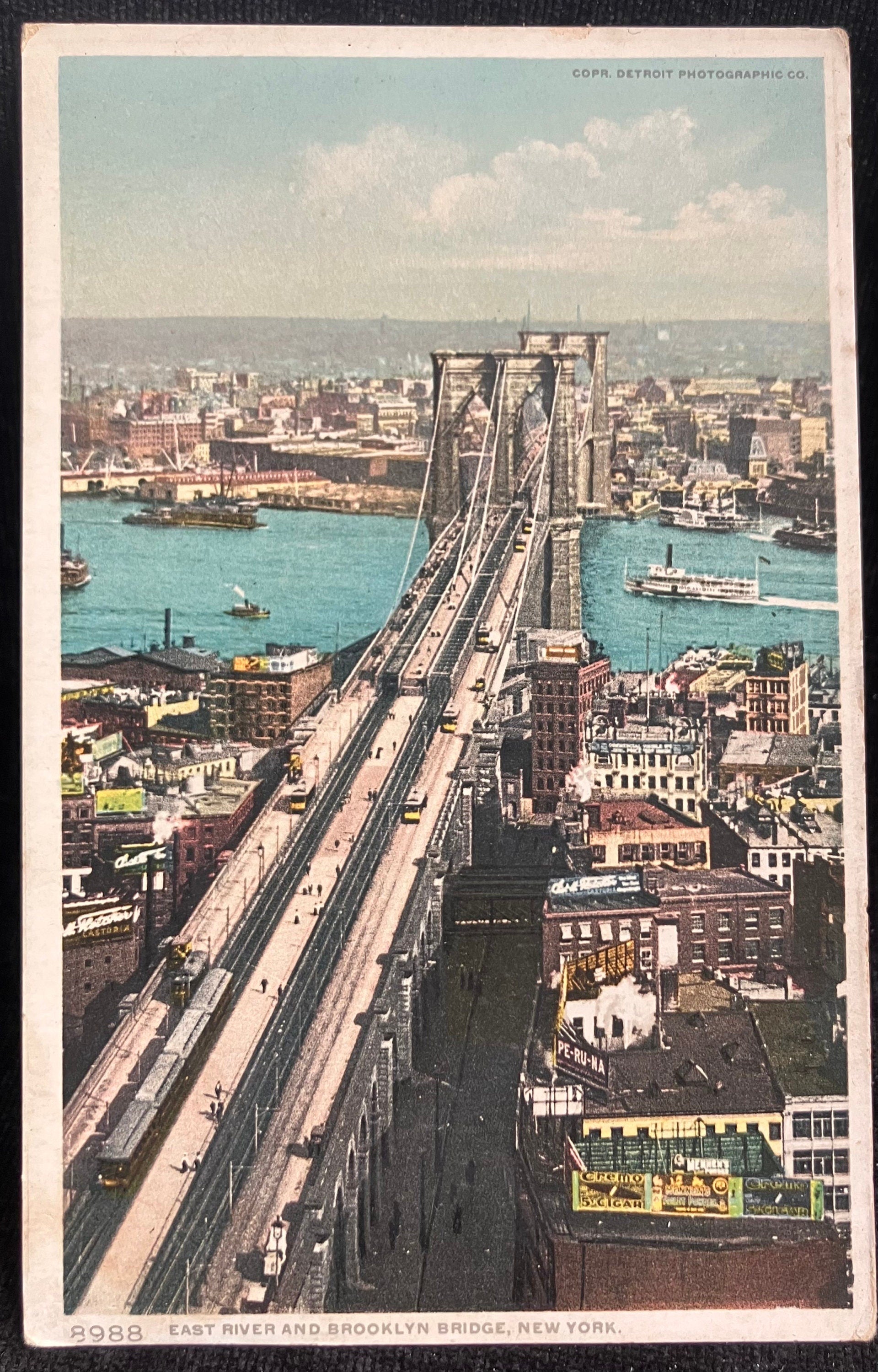 On front: East River and Brooklyn Bridge, New York- Copr. Detroit Photographic Co.