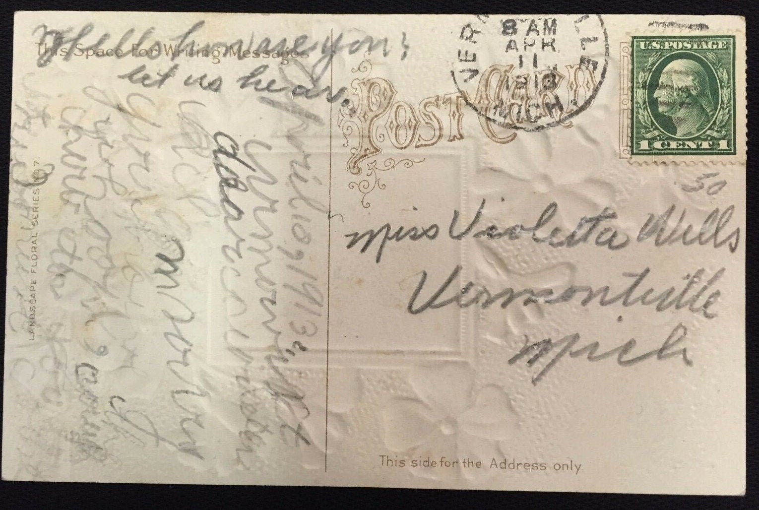 Embossed Landscape Floral - 1913 Vintage Postcard