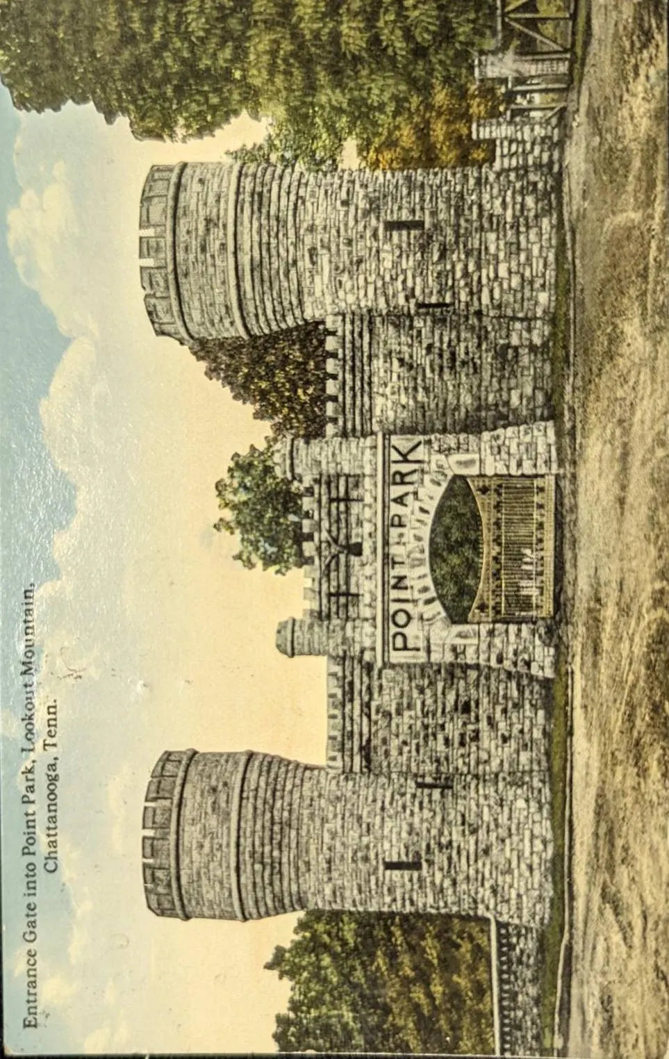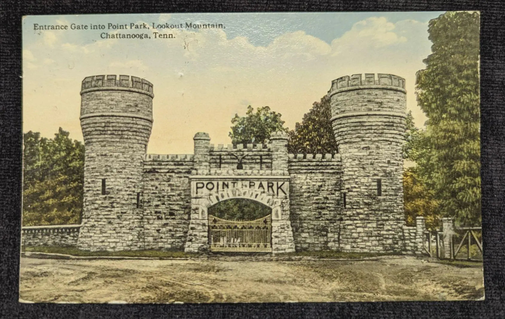 Entrance Gate into Point Park, Lookout Mountian, Chattanooga, Tennessee - Vintage 1910s History Postcard