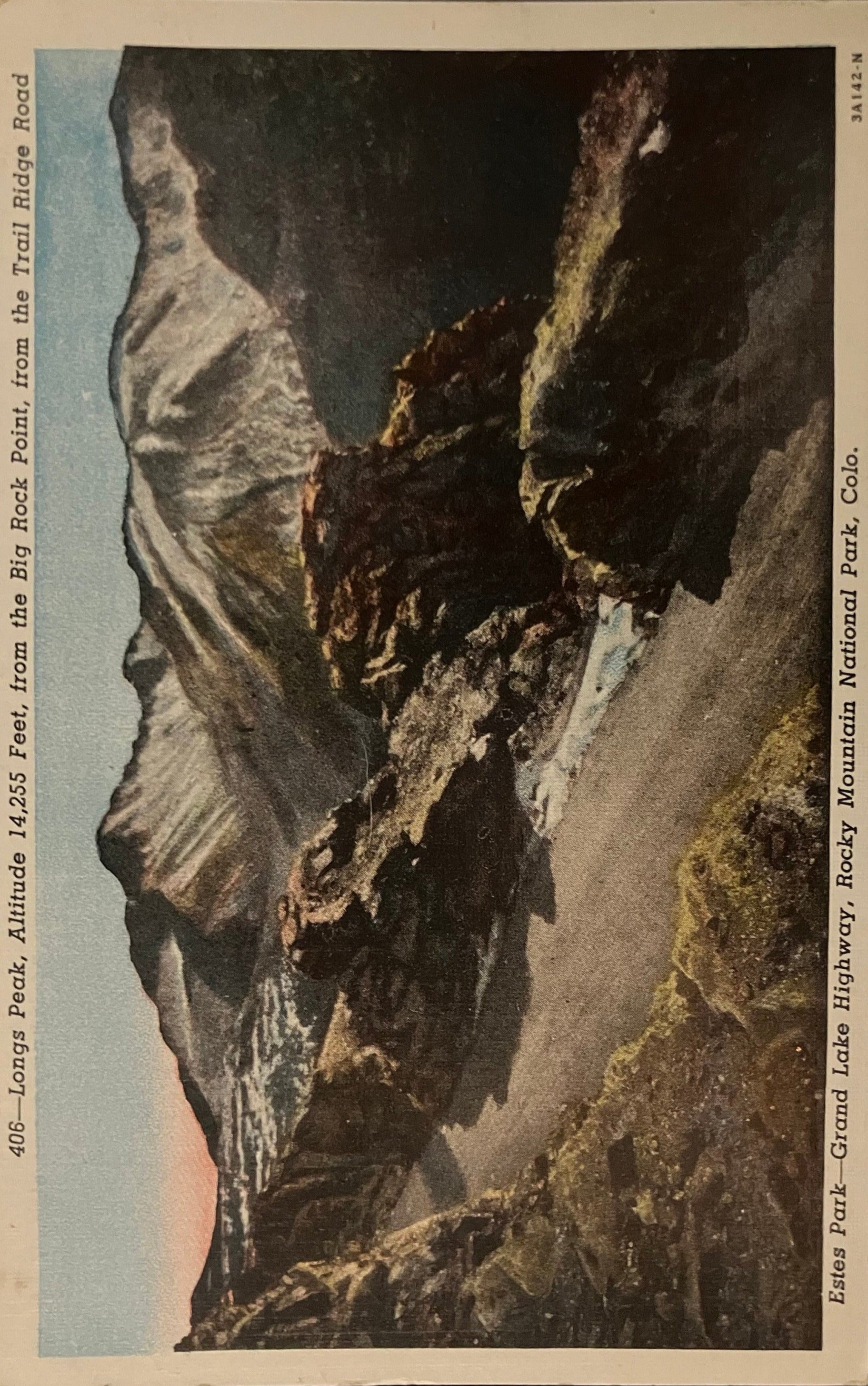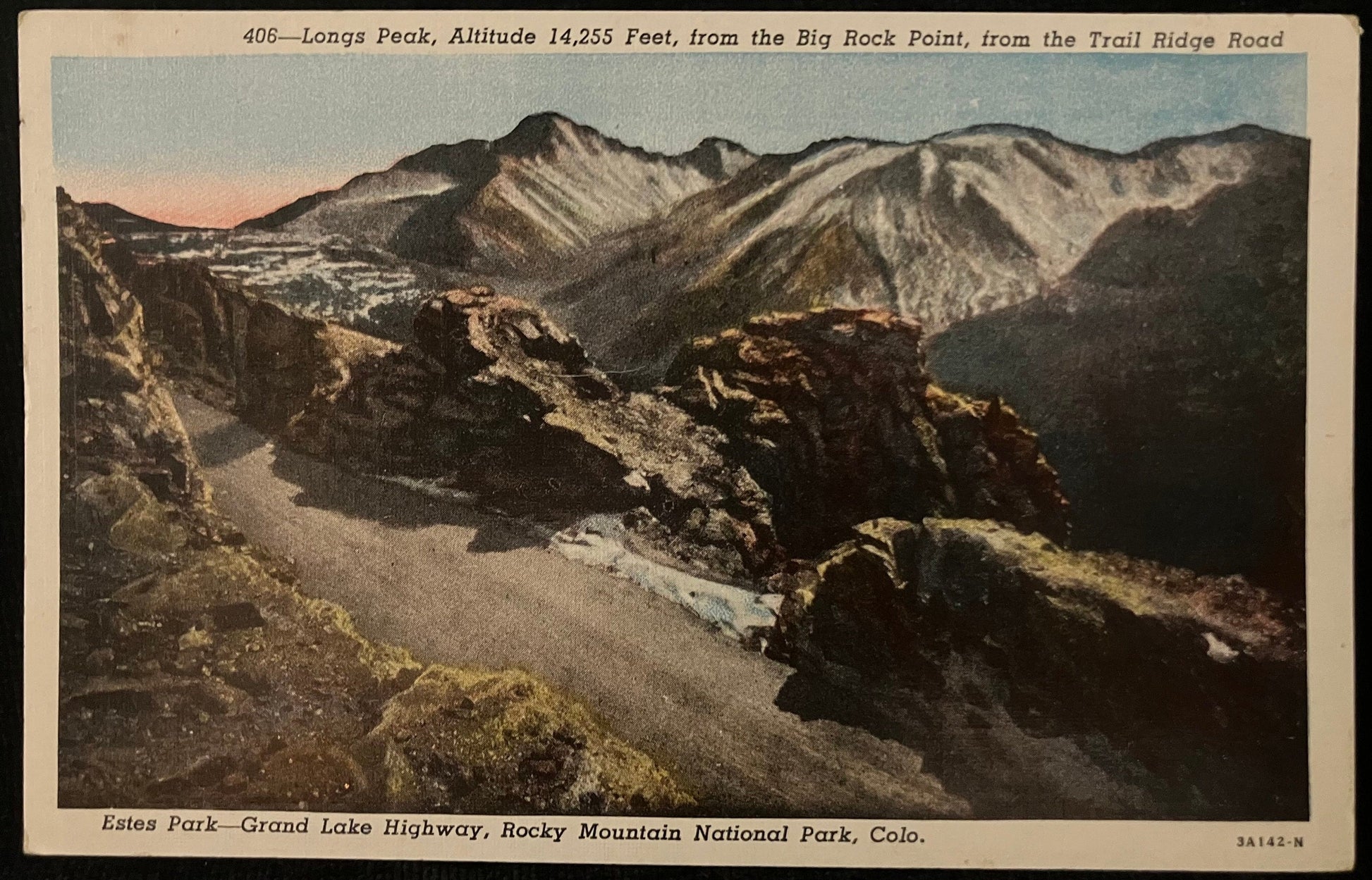 Estes Park - Grand Lake Highway Rocky Mountain Notional Park, Colorado - Longs Peak - 1940s Linen Postcard