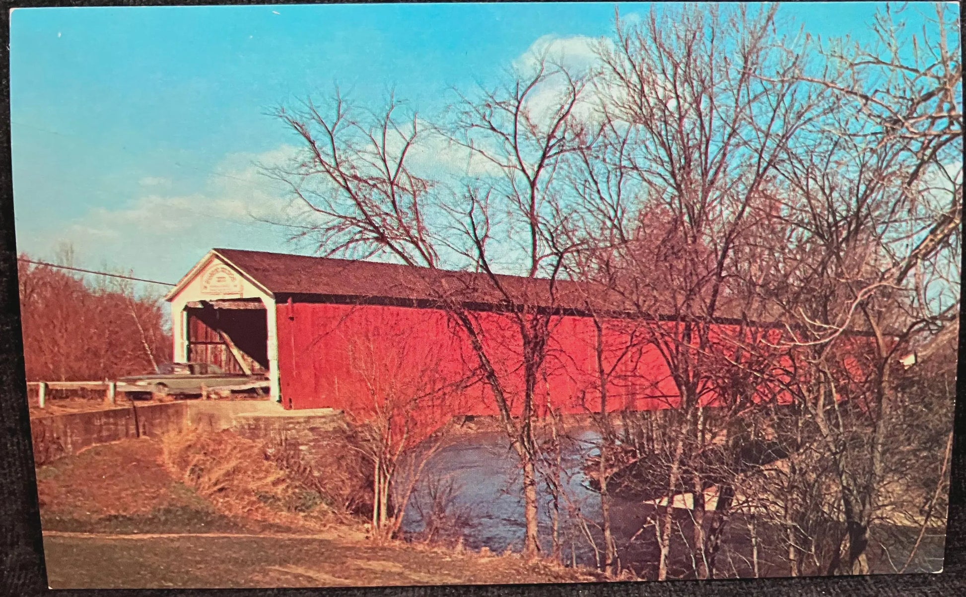 Eugene Bridge over Vermillion River - Indiana - Photo: John V. Pontiere Jr. - Vintage Covered Bridge Postcard