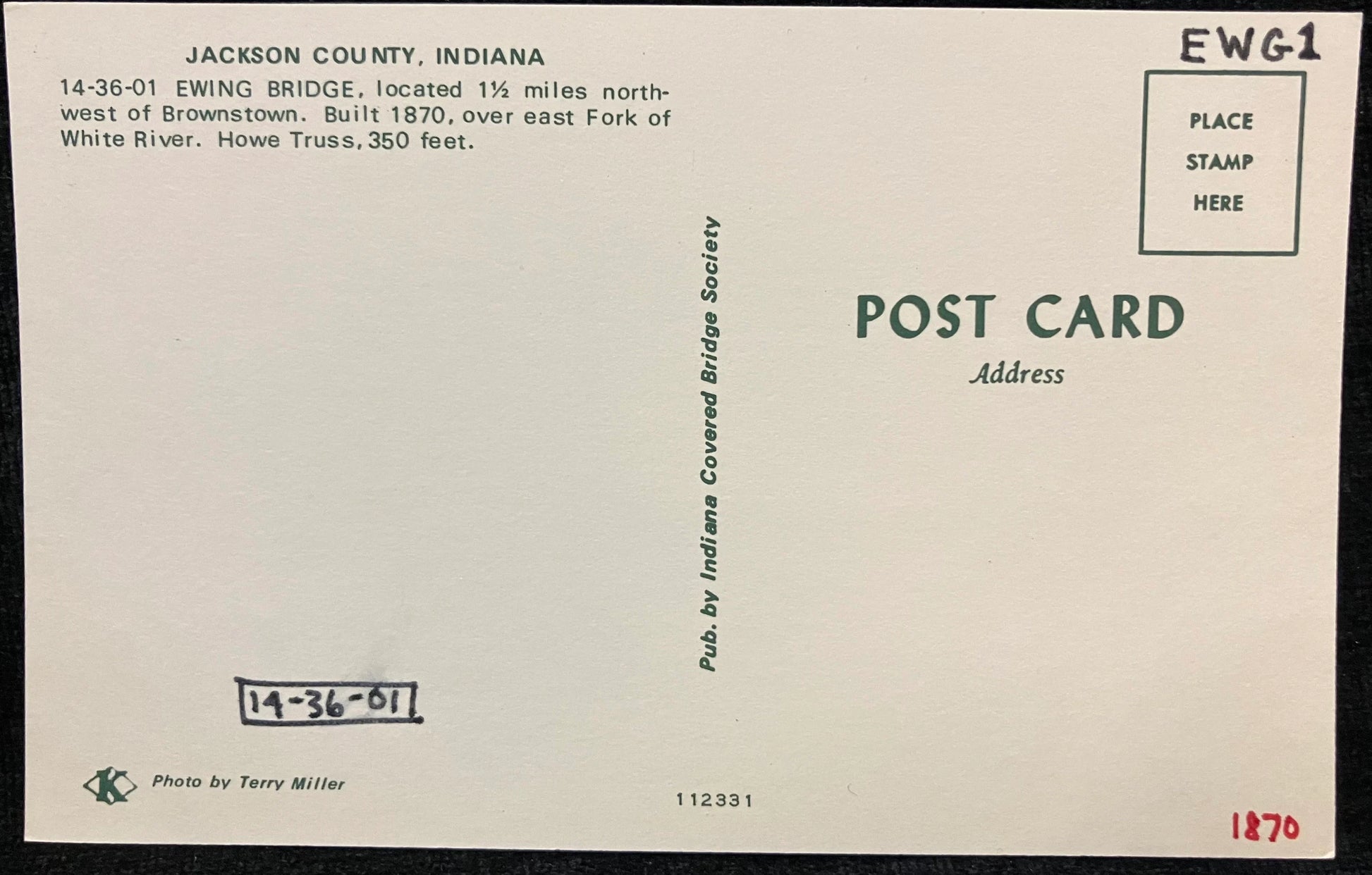 Ewing Bridge in Jackson County, Indiana - Photo: Terry Miller - Vintage Covered Bridge Postcard