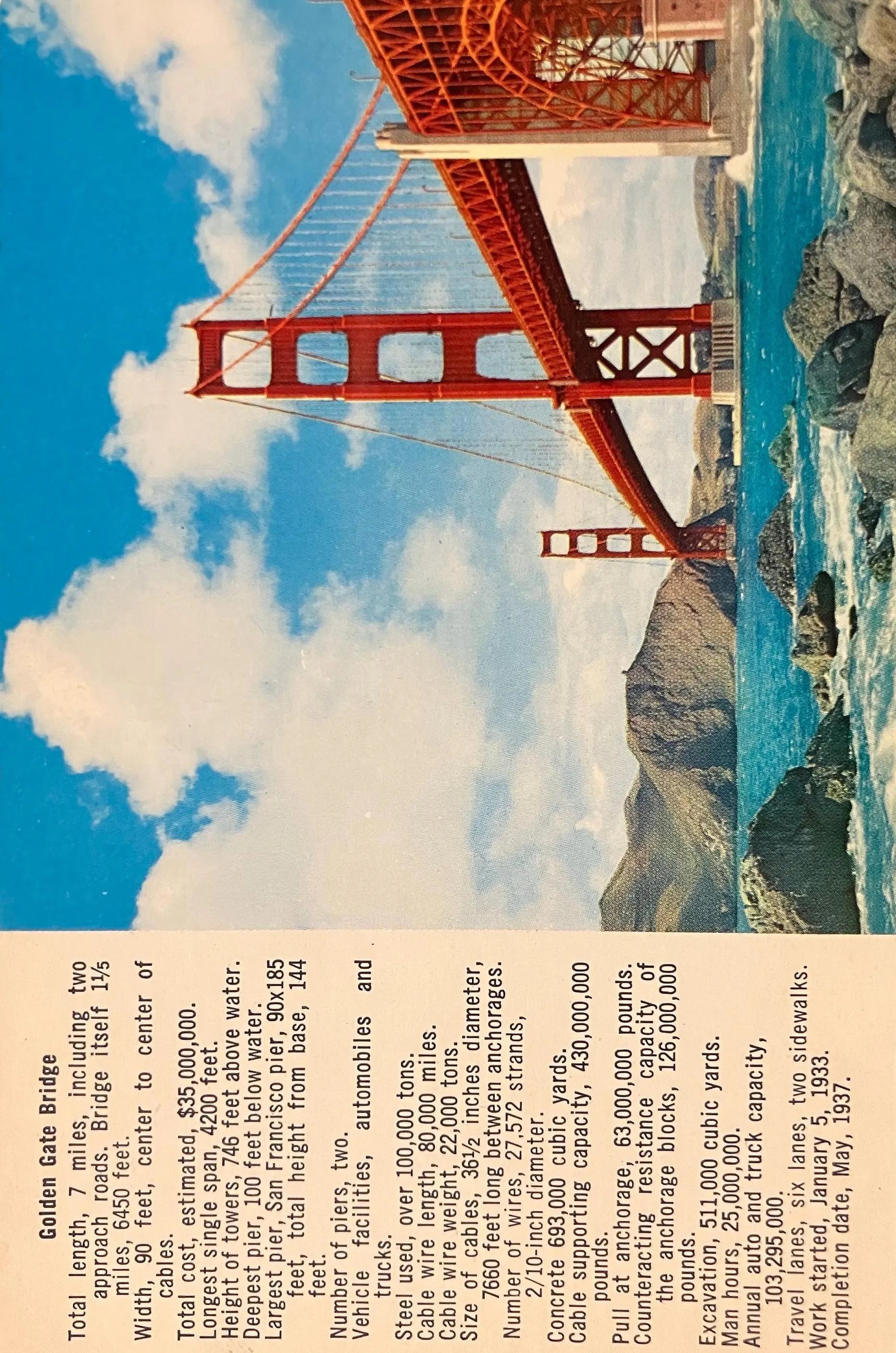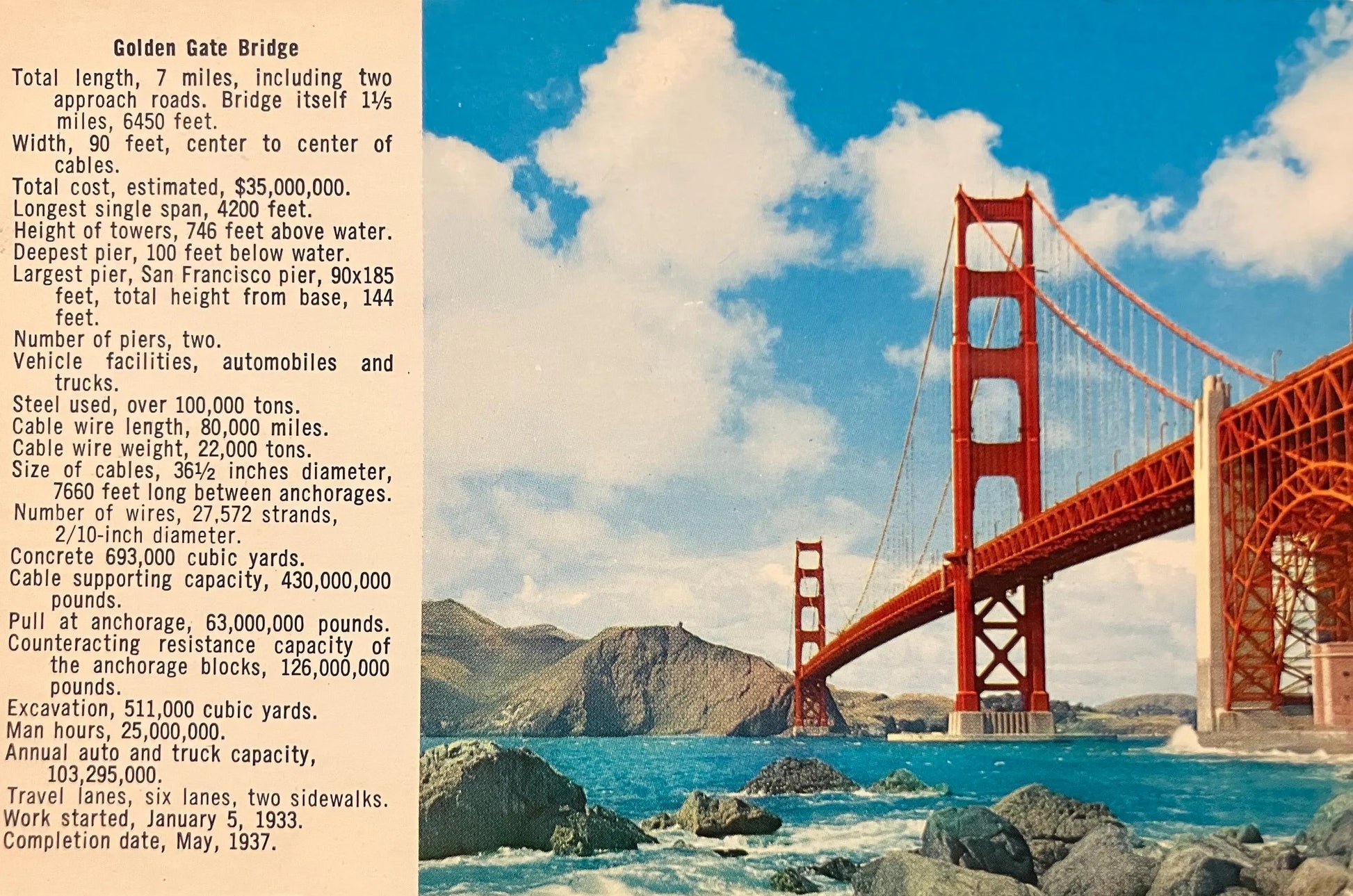 Facts about the Golden Gate Bridge in San Francisco, California - Vintage Bridge Postcard