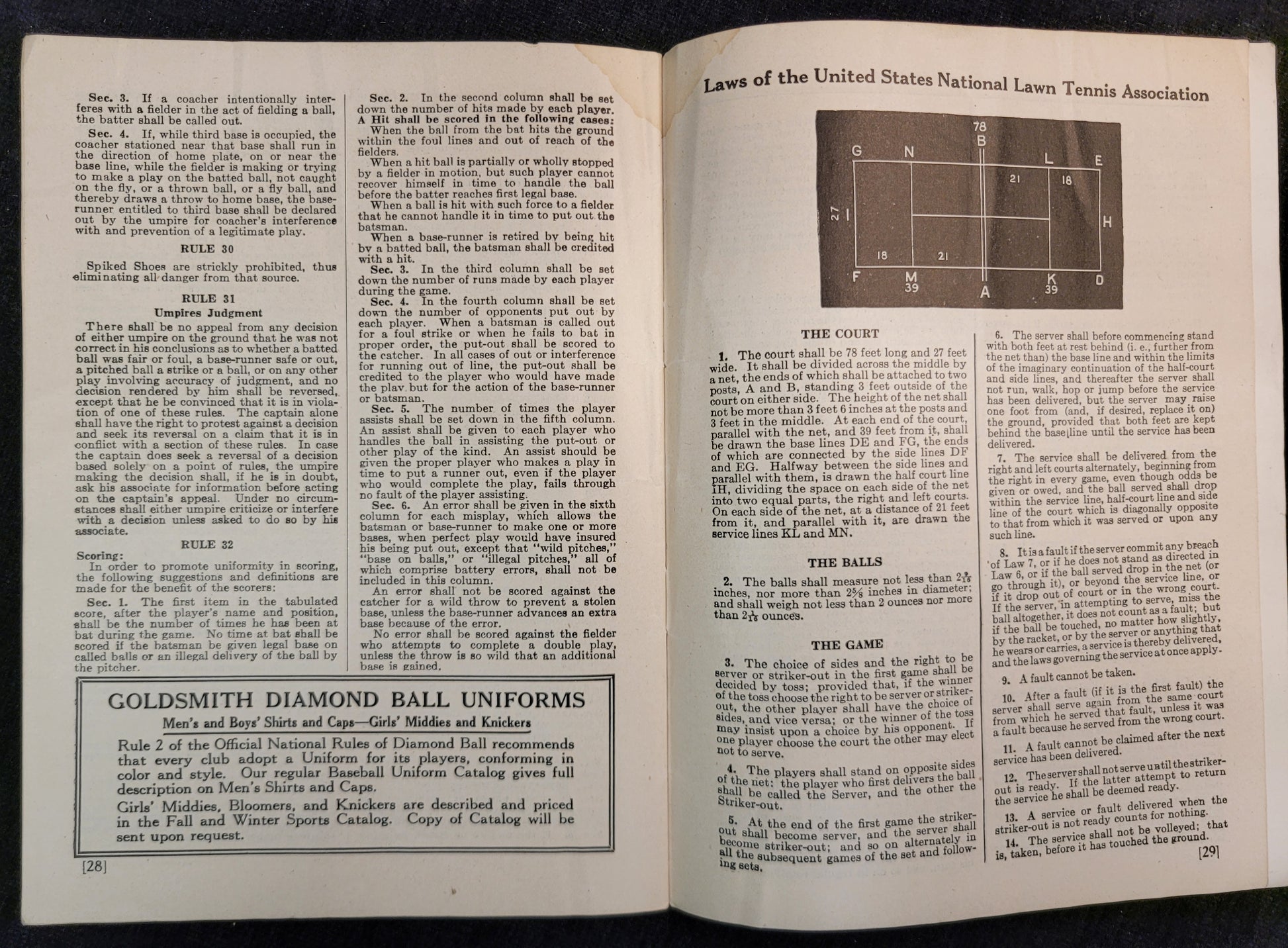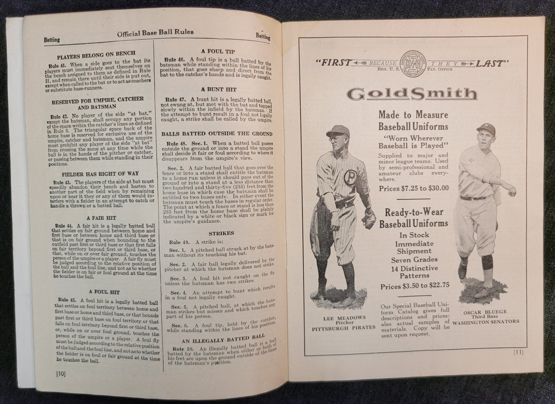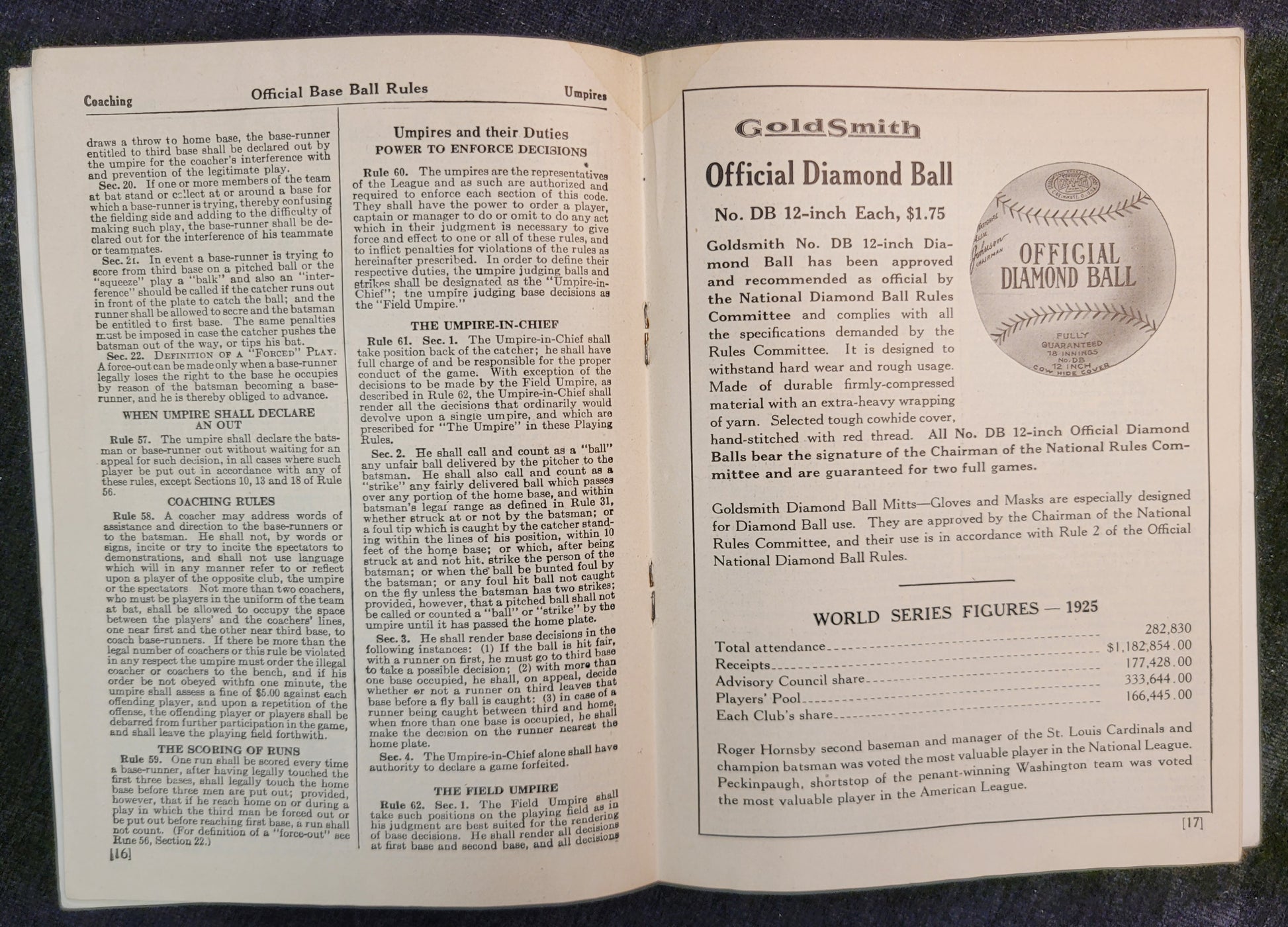 Goldsmith & Sons - Official Baseball Rules -1926 **Two In Stock!!**